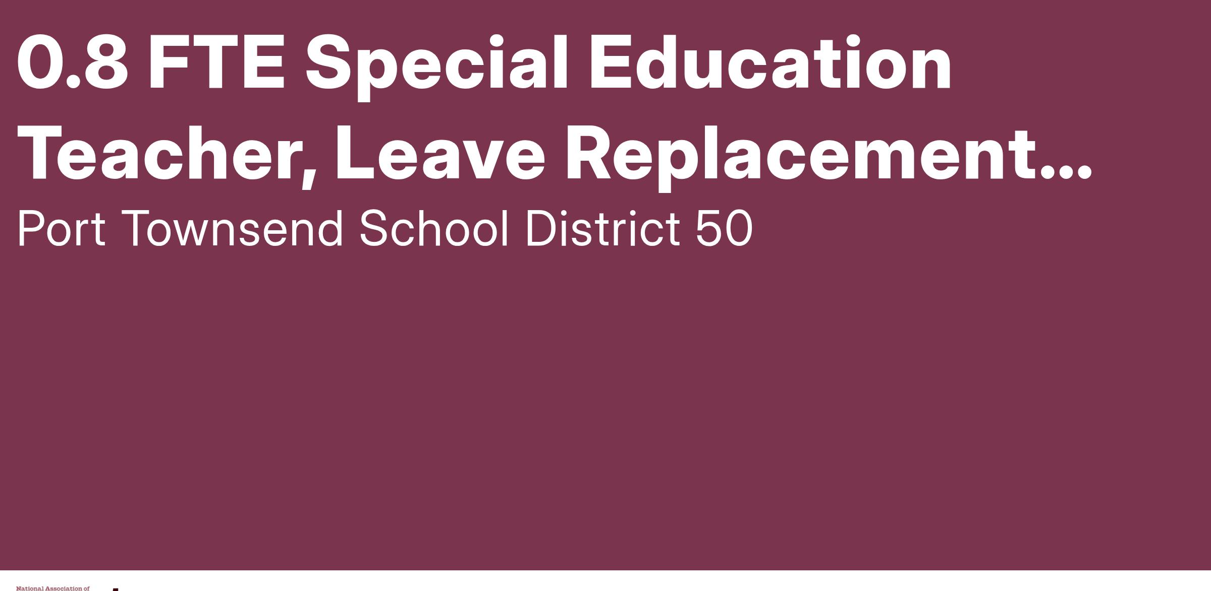 Position Opening Announcement: 0.8 FTE Special Education Teacher – Leave Replacement Position