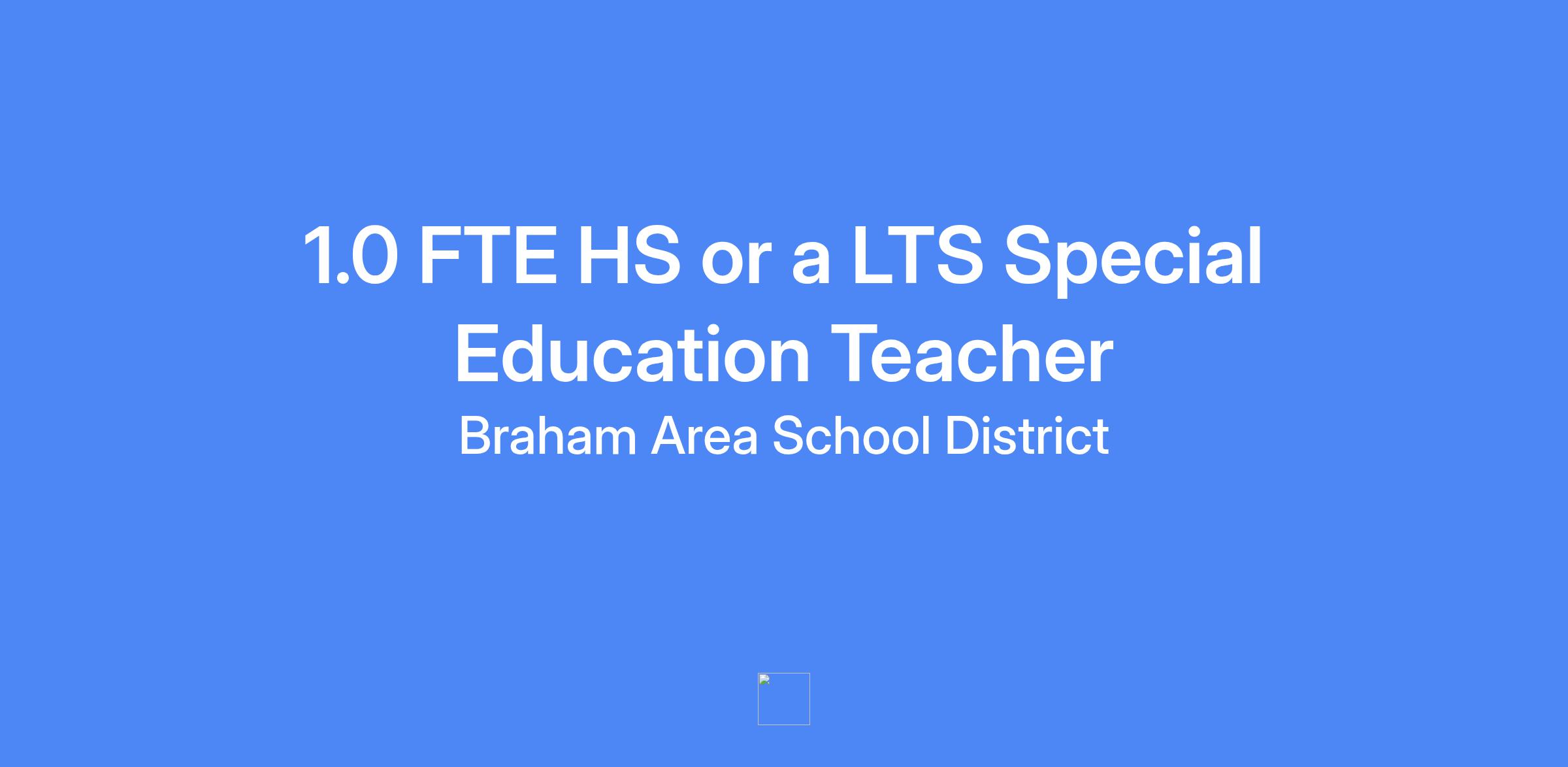 Description: Braham Area Schools has an opening for a 1.0 FTE or a LTS Special Education Teacher starting on January 5 of the 2025-2026 school year.