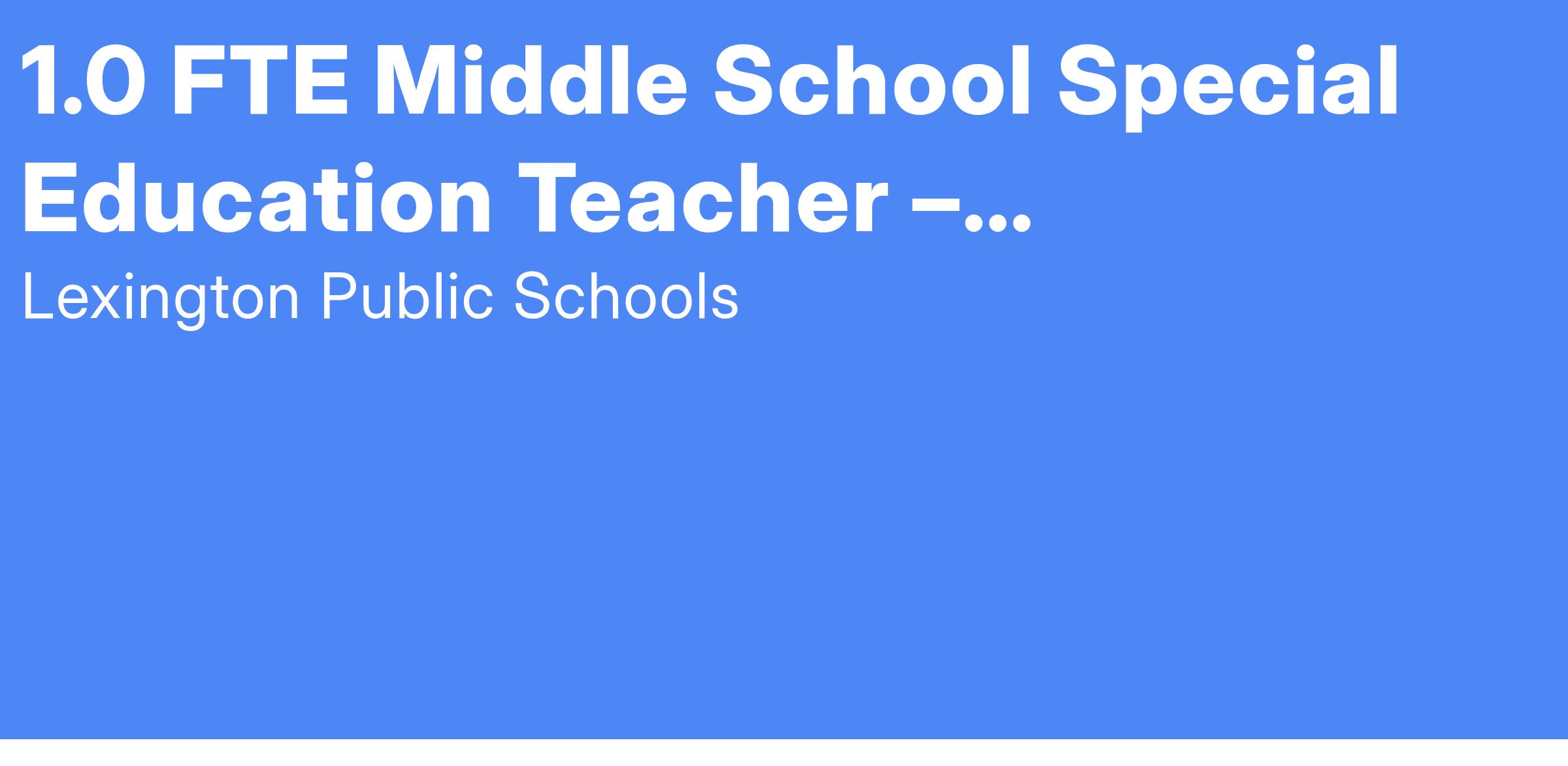 Position Title: 1.0 FTE Middle School Special Education Teacher (TLP)
