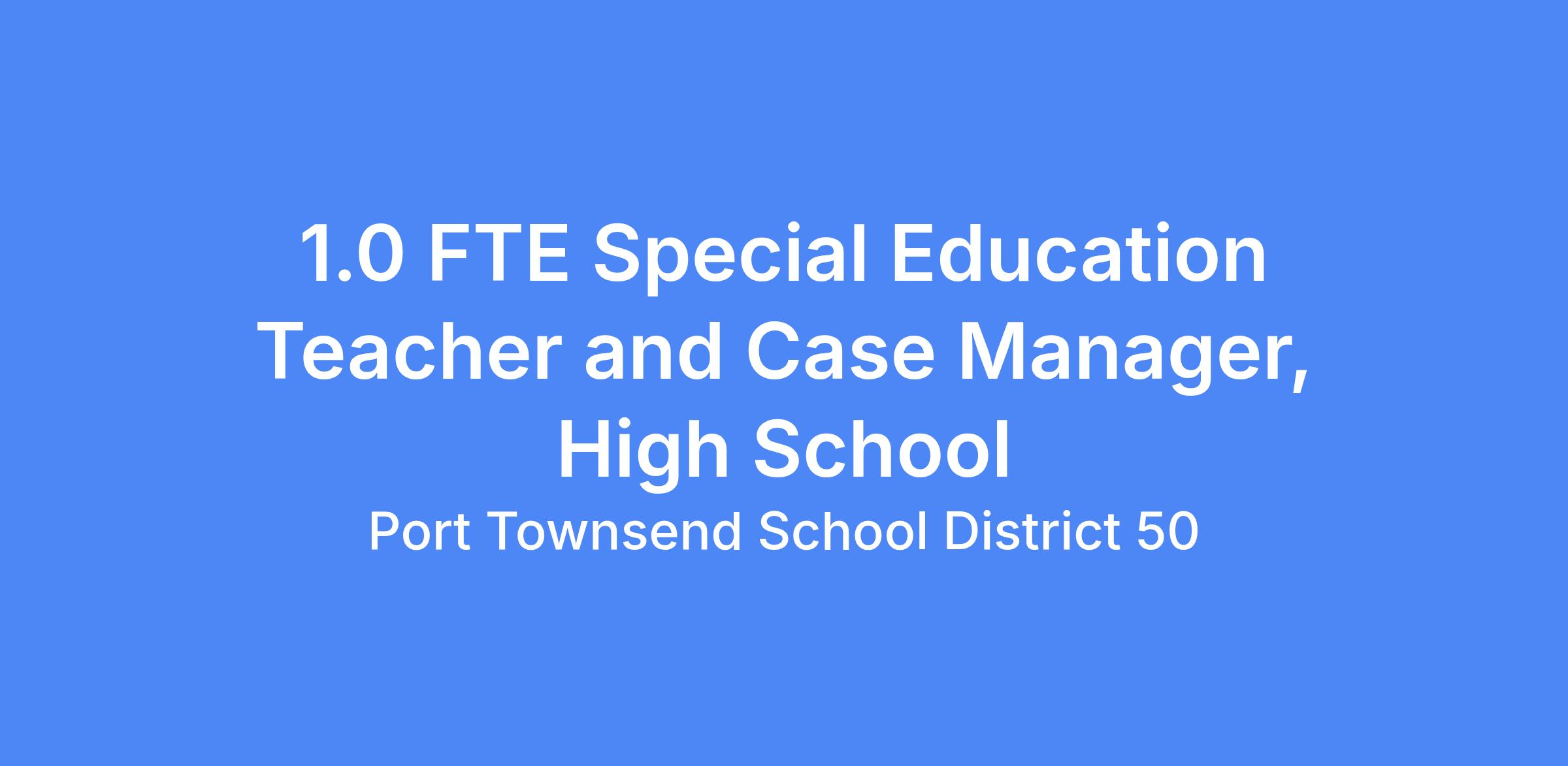 Position Opening Announcement: 1.0 FTE Special Education Teacher and Case Manager