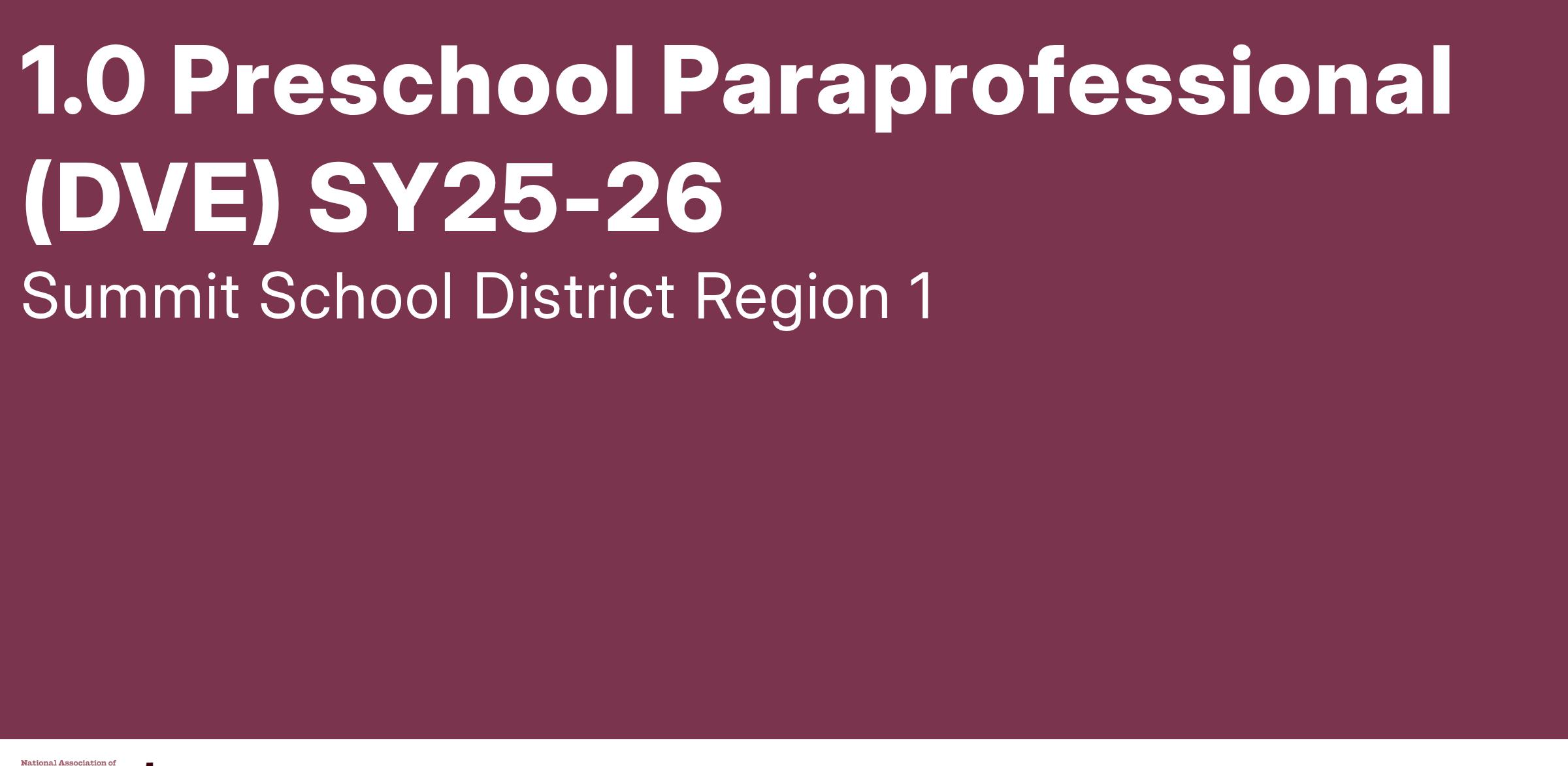 JOB TITLE: PARAPROFESSIONAL, PRESCHOOL