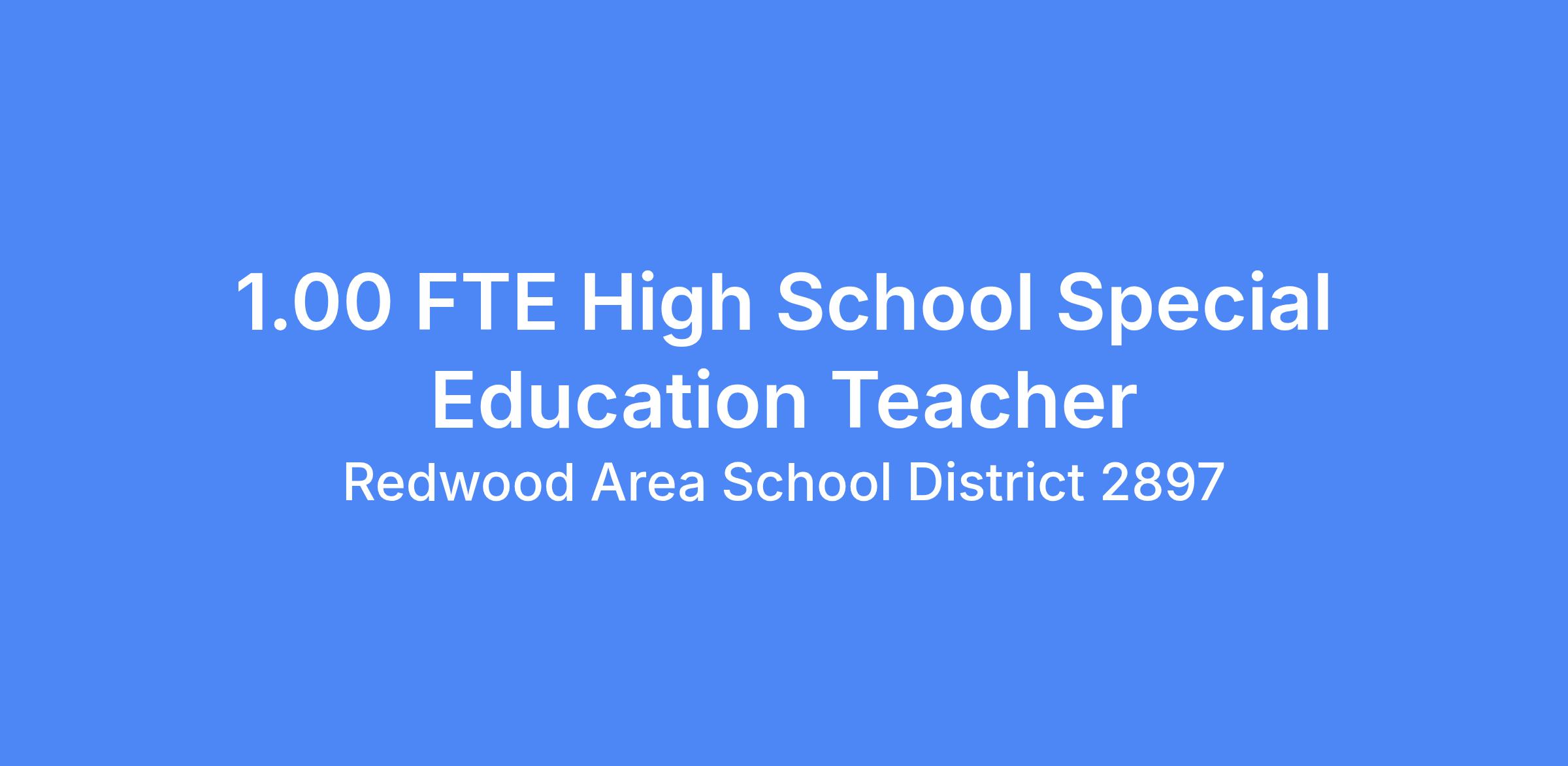 1.00 FTE High School Special Education Teacher � Redwood Area School District is seeking applicants for a full-time High School Special Education Teacher for the 2026-2027 school year. Starting base salary is $46,500. Position will be open until filled. EOE