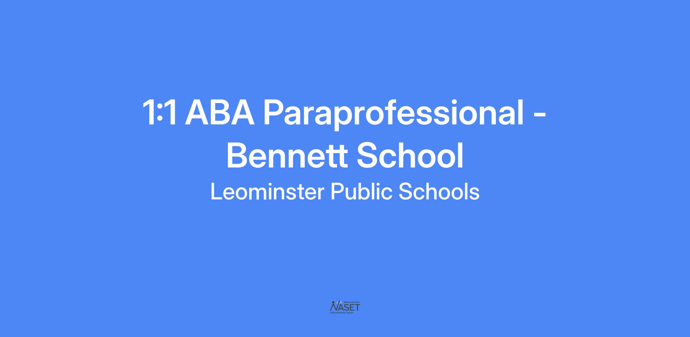 Leominster Public Schools is seeking an 1:1 ABA paraprofessional to assist the student in the classroom with all instructional materials as determined by the assigned teacher and help the student with needs outside of the classroom but related to achieving needed skills and requirements for succeeding in school.