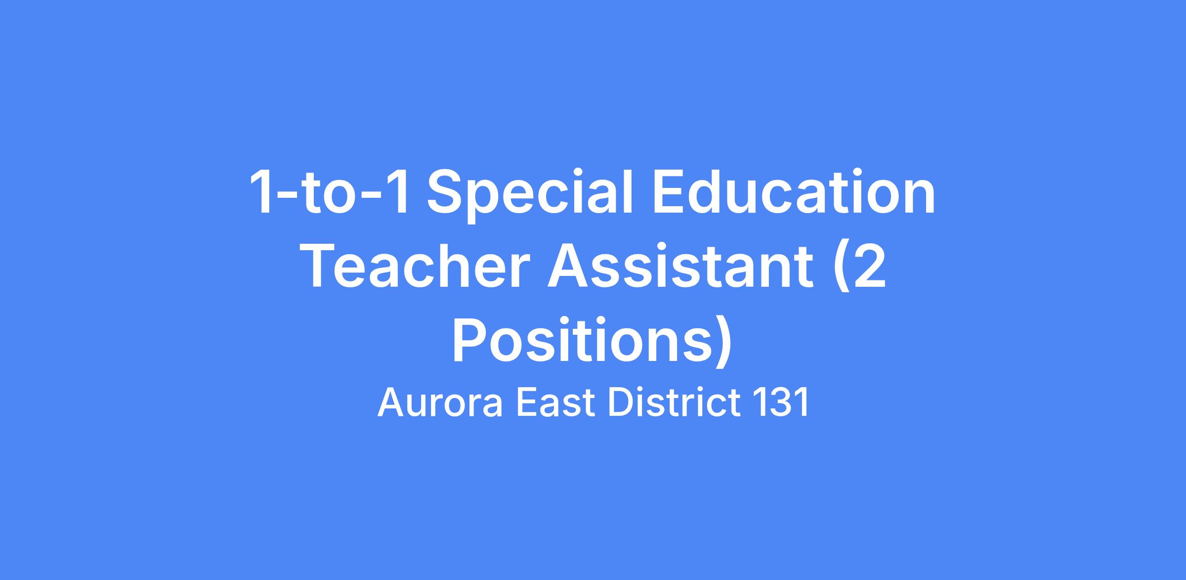 1-to-1 Special Education Teacher Assistant (2 Positions)