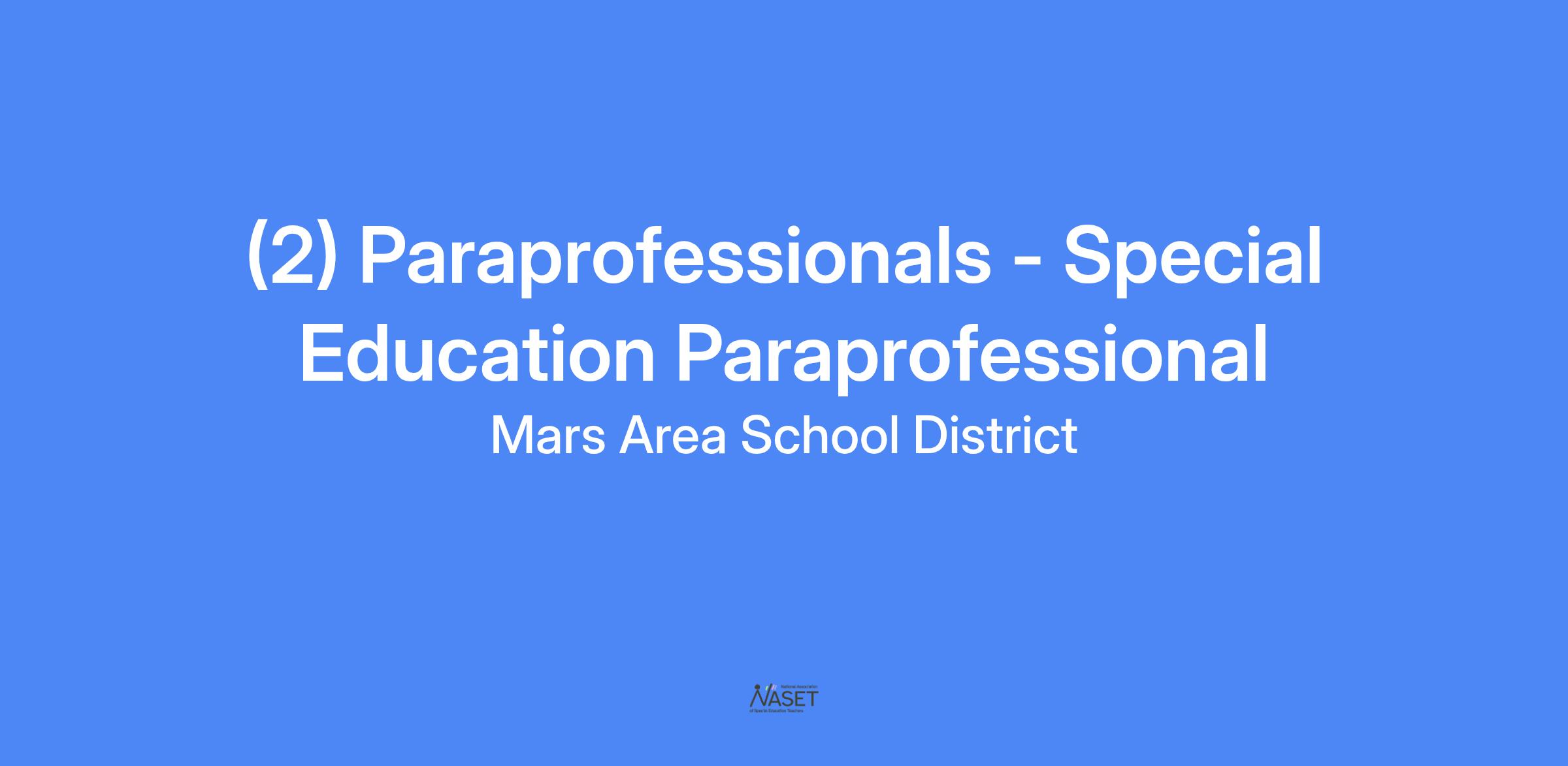 PARAPROFESSIONALS – Immediate Full-Time positions available at the Mars Area High School