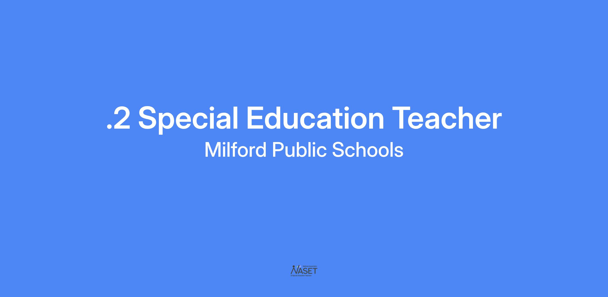 .2 Special Education Teacher needed for Milford Public Schools. This position will be available immediately.