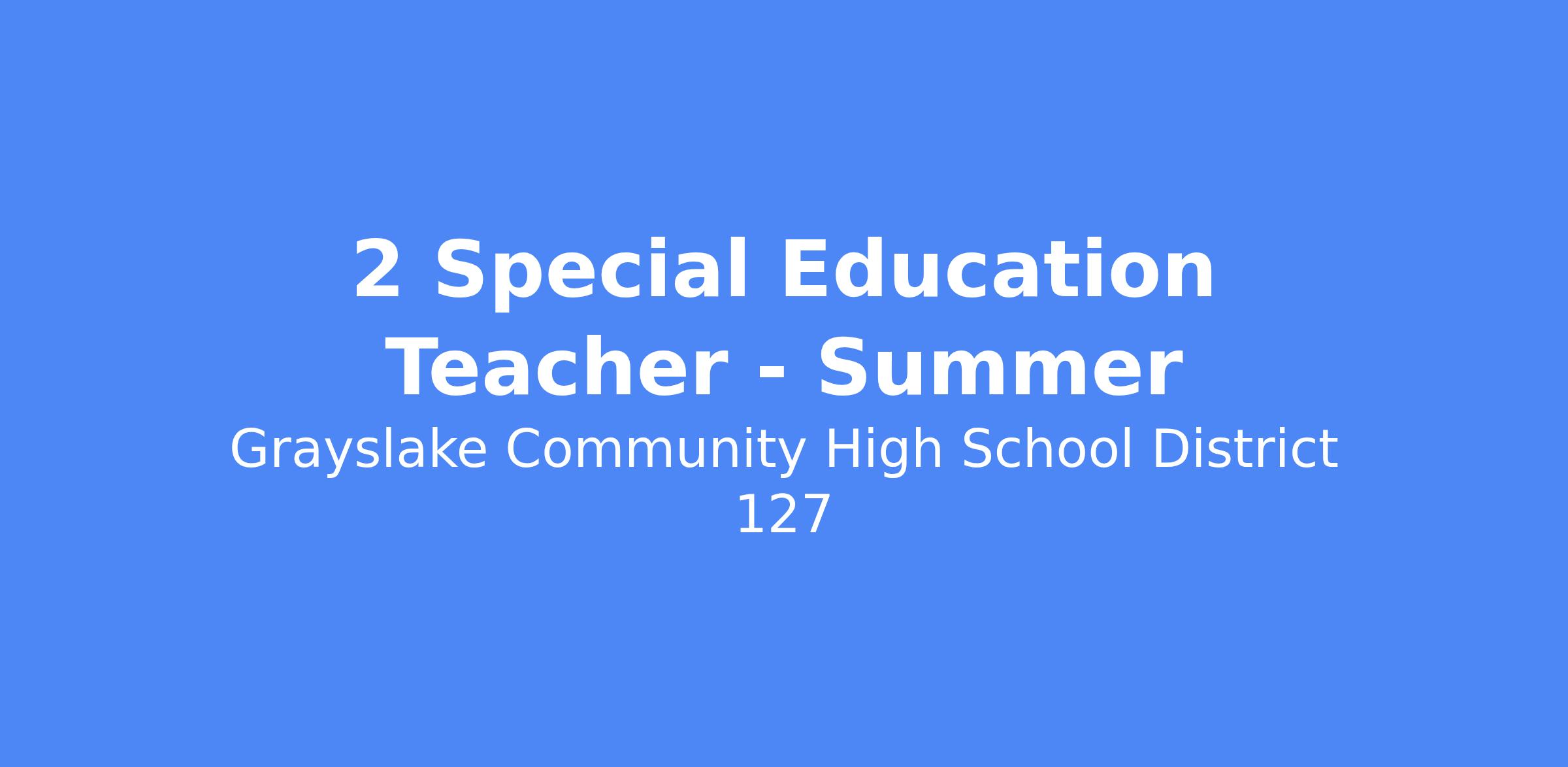 Grayslake Community High School District 127 is seeking to fill 2 Summer Inclusion Camp Special Education Teacher positions for summer 2026.