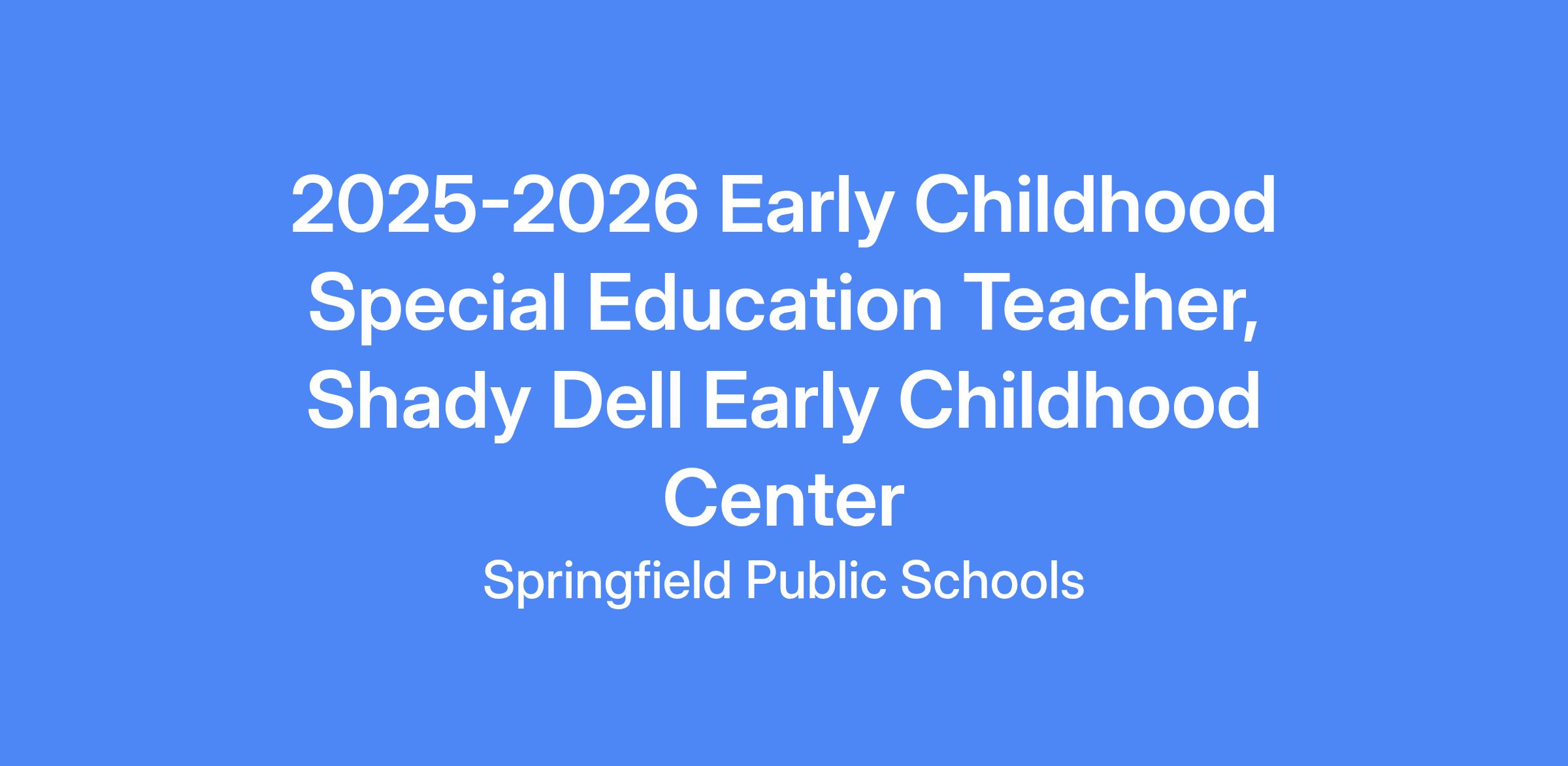 Job Title: 2026-2027 Early Childhood Special Education Teacher, Shady Dell Early Childhood Center