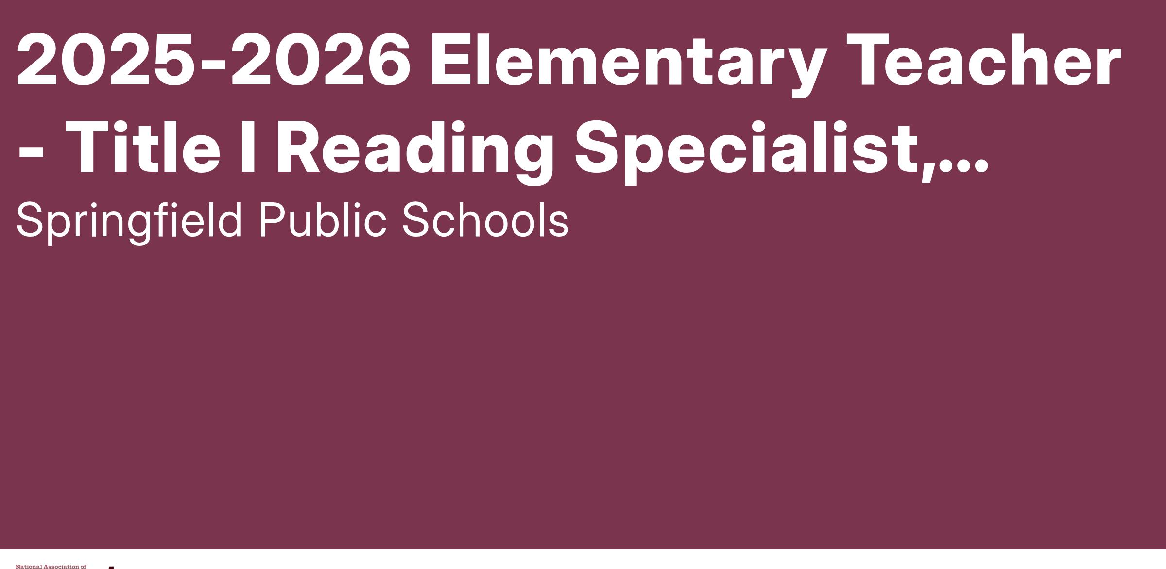Job Title: Elementary Teacher - Title I Reading Specialist, Weller Elementary School