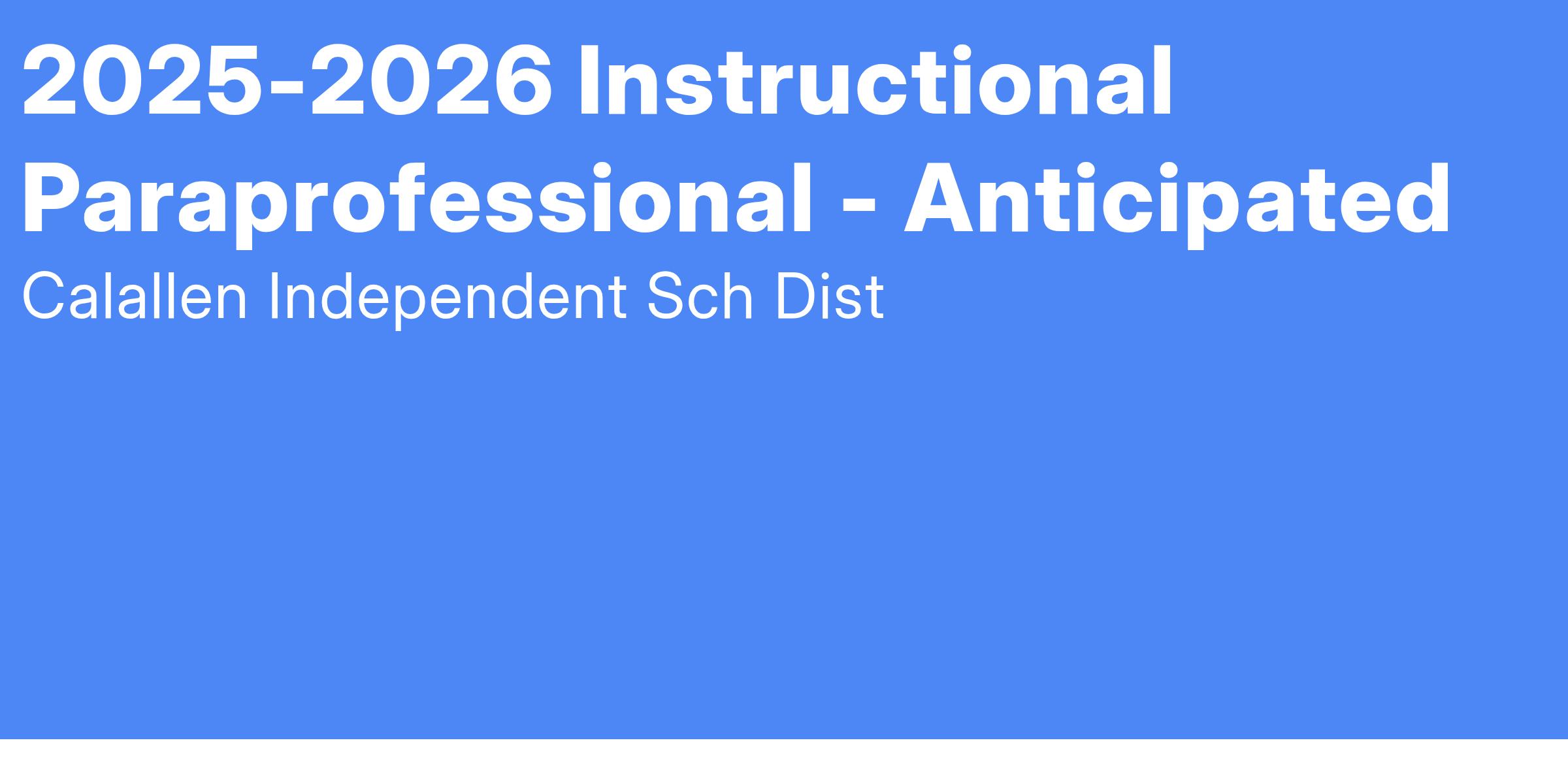 Job Title: Instructional Paraprofessional Exemption Status/Test: Nonexempt