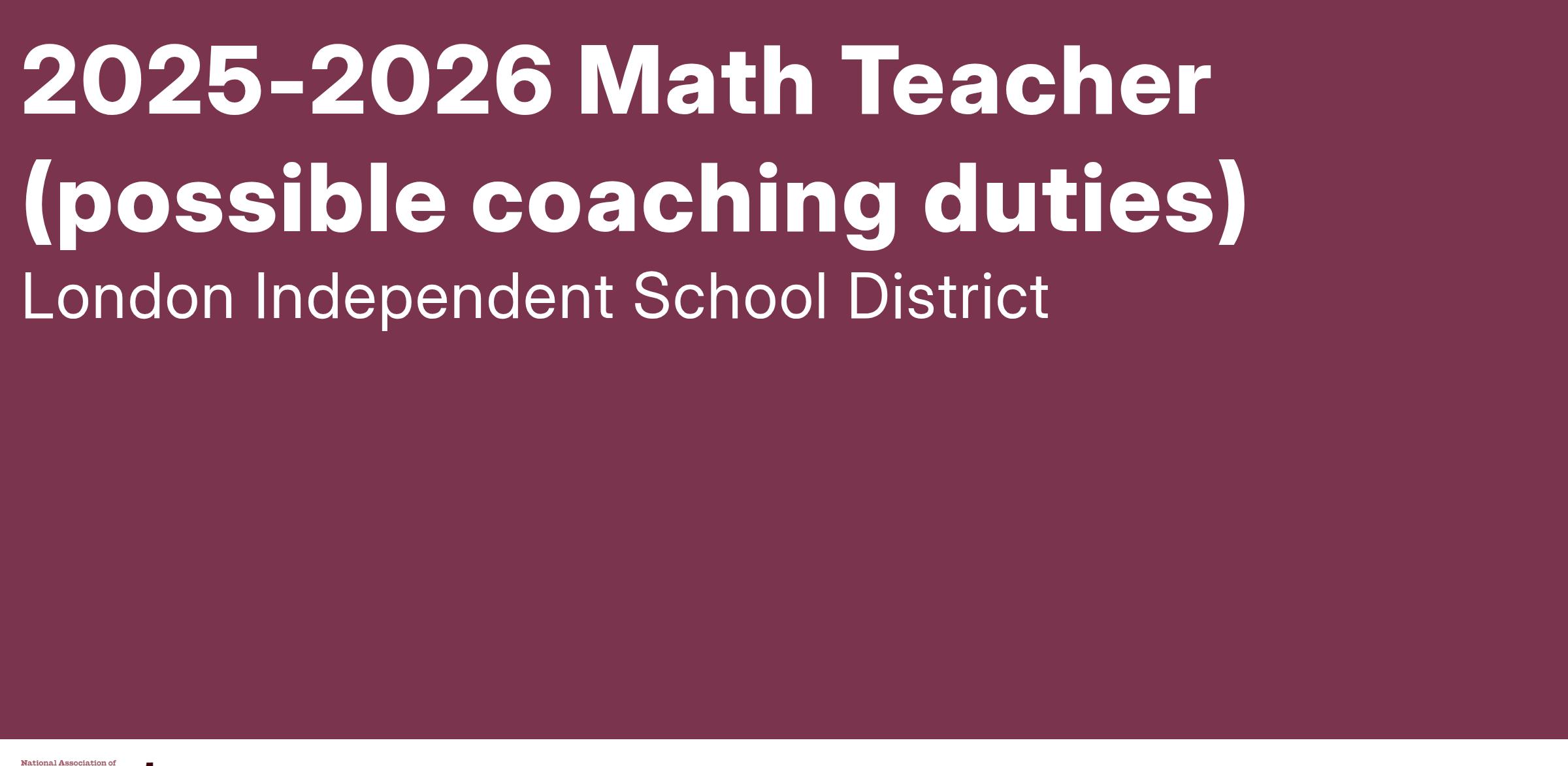 Job Title: 2025-2026 Math Teacher (possible coaching duties)