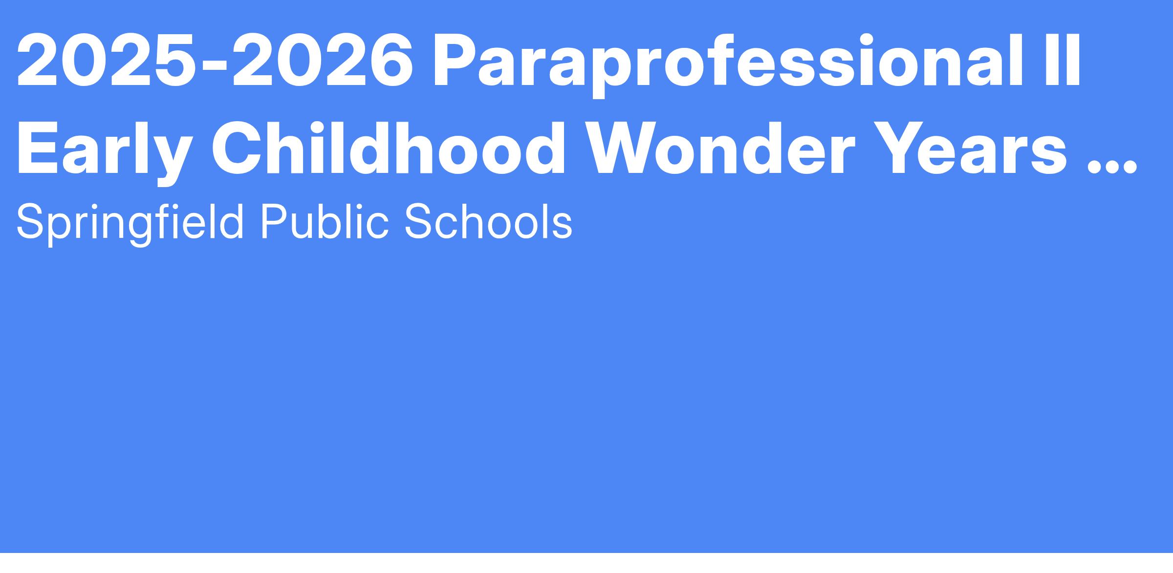Job Title: Paraprofessional II - Early Childhood Wonder Years