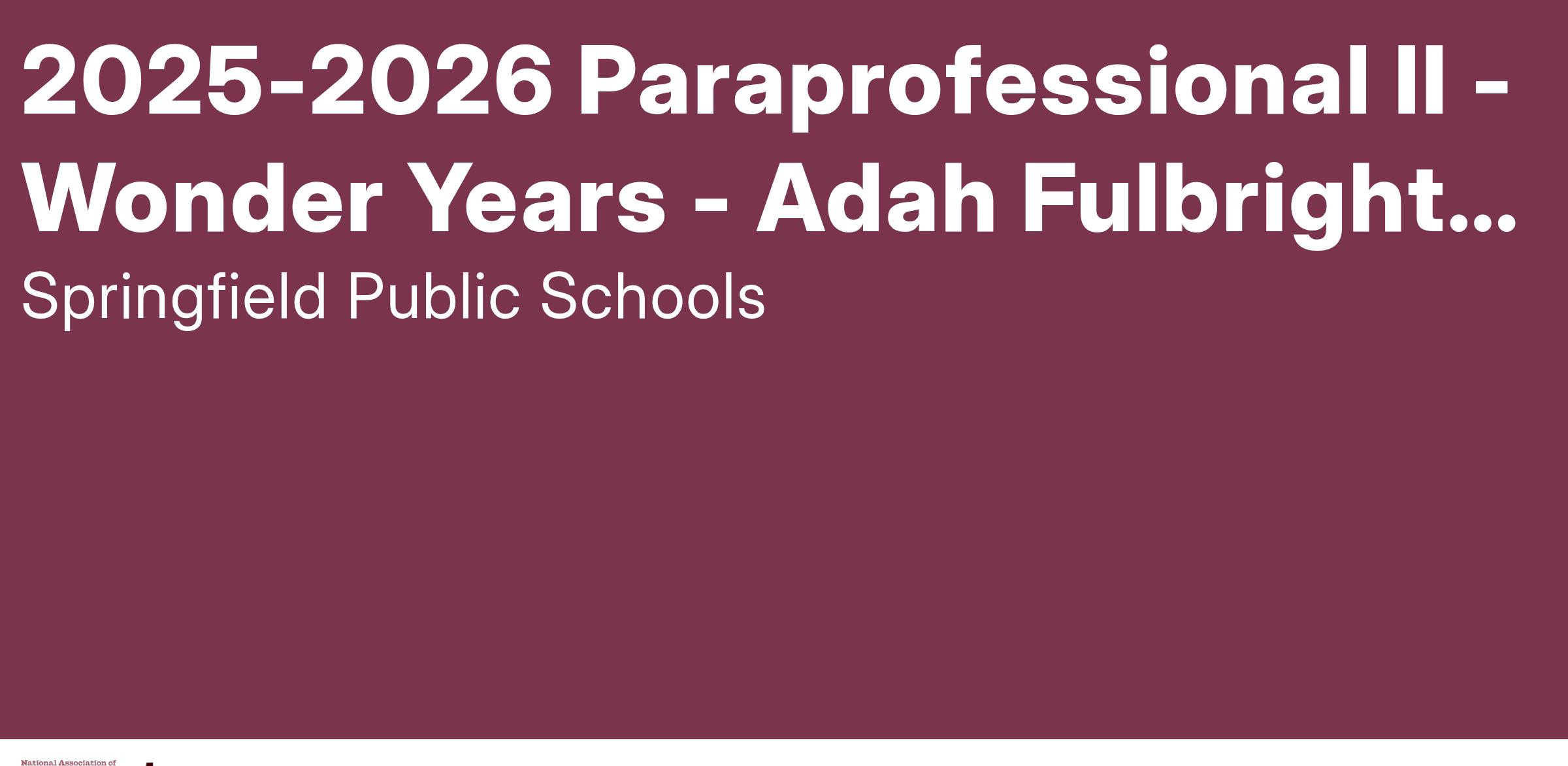 Job Title: Paraprofessional II - Wonder Years - Adah Fulbright