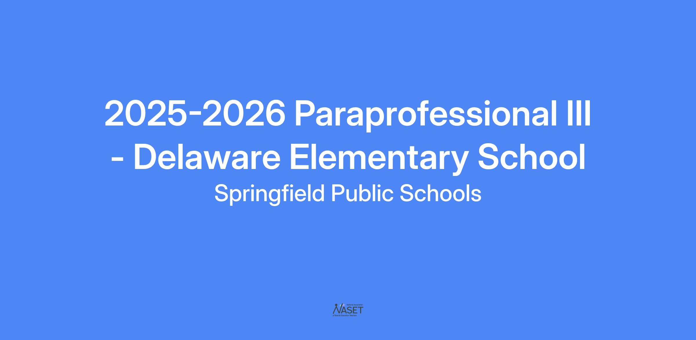2025-2026 Paraprofessional III - Delaware Elementary School