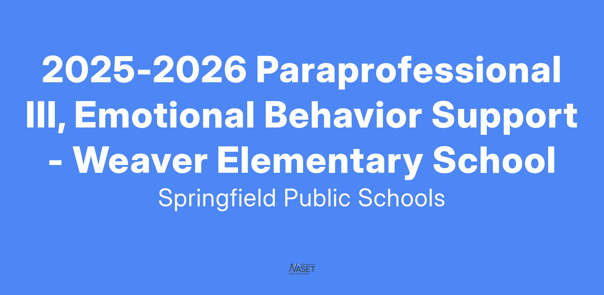 2025-2026 Paraprofessional III, Emotional Behavior Support - Weaver Elementary School