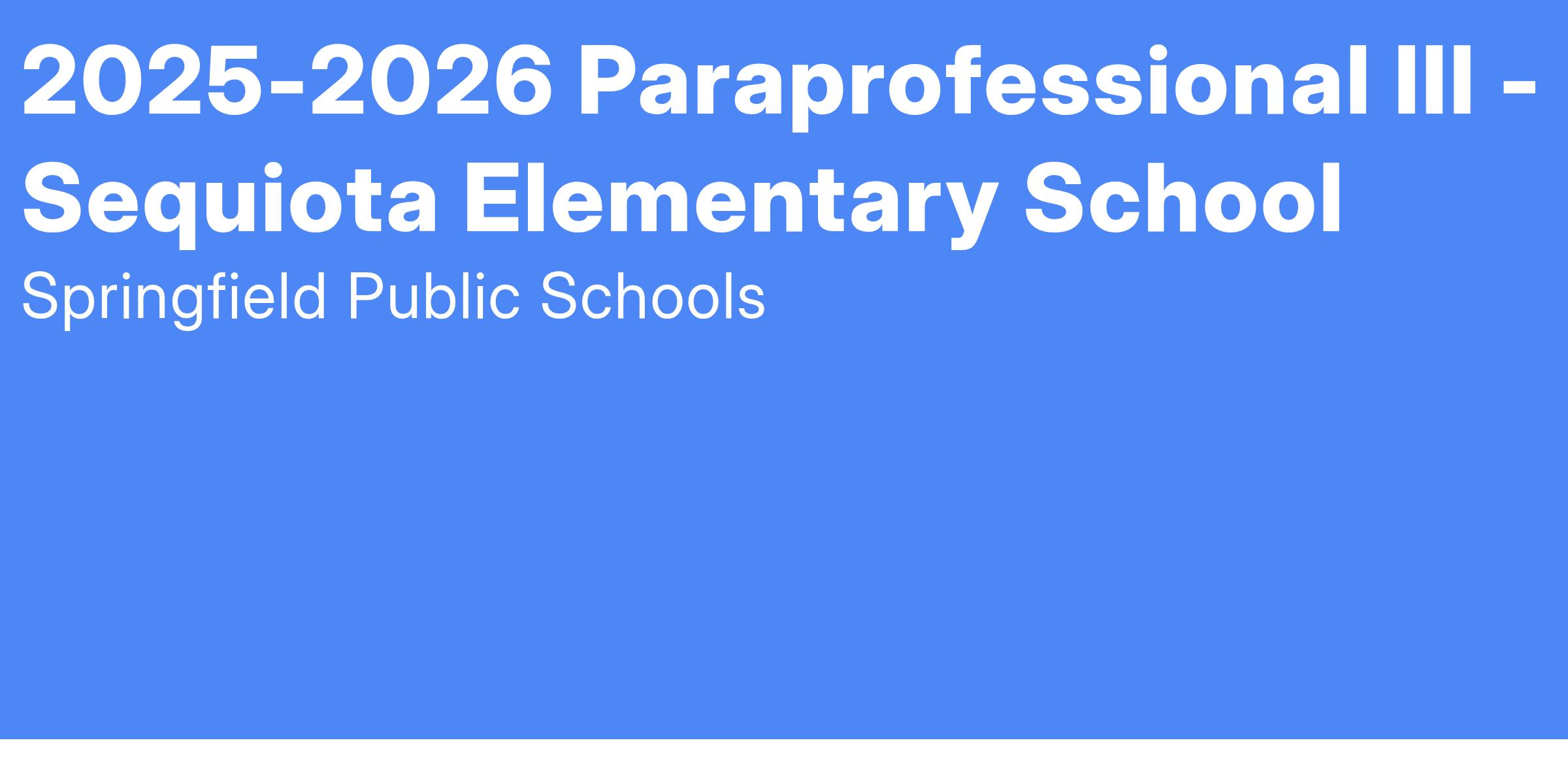 2025-2026 Paraprofessional III - Sequiota Elementary School