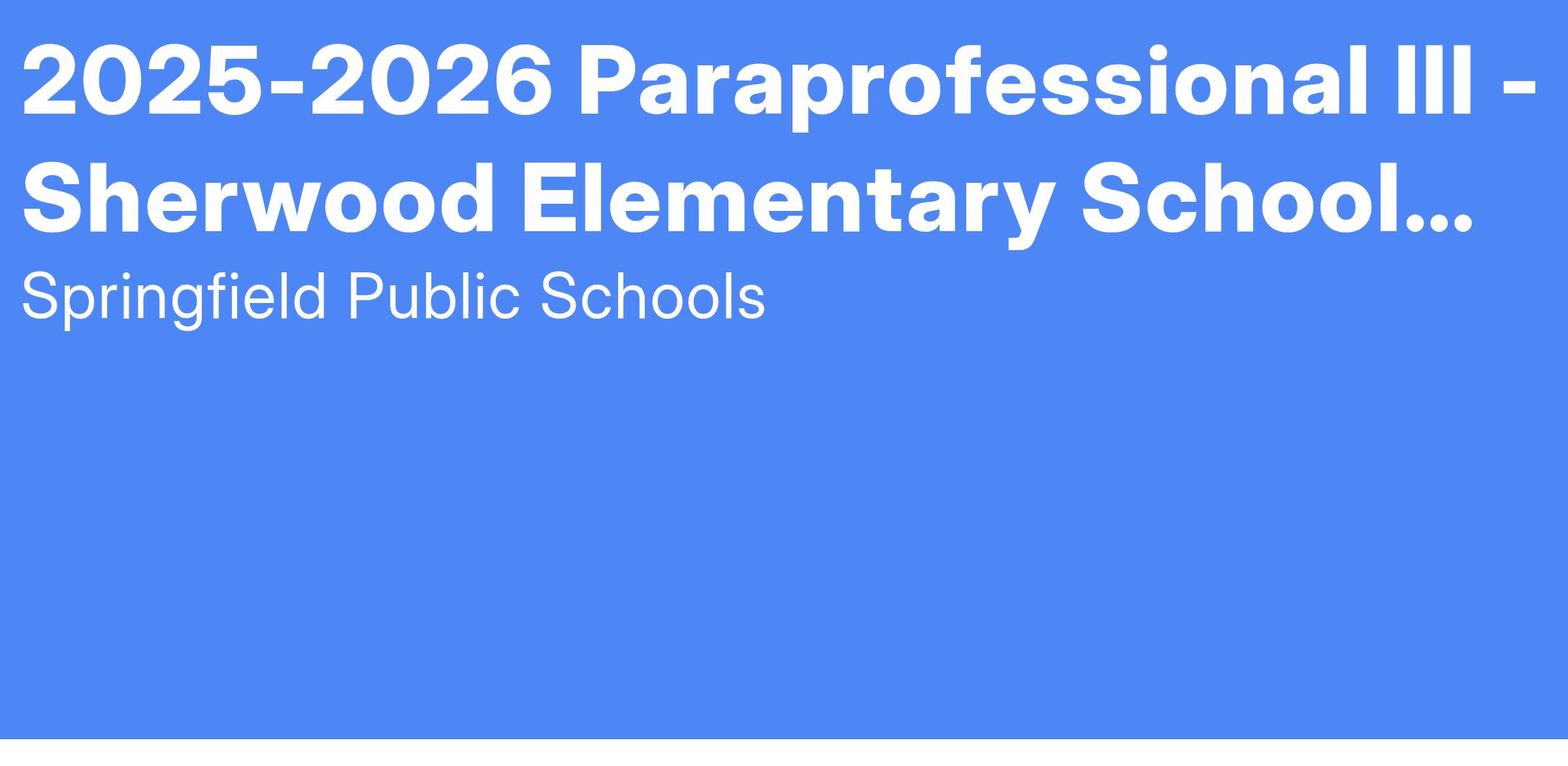 2025-2026 Paraprofessional III - Sherwood Elementary School (Multiple Openings)