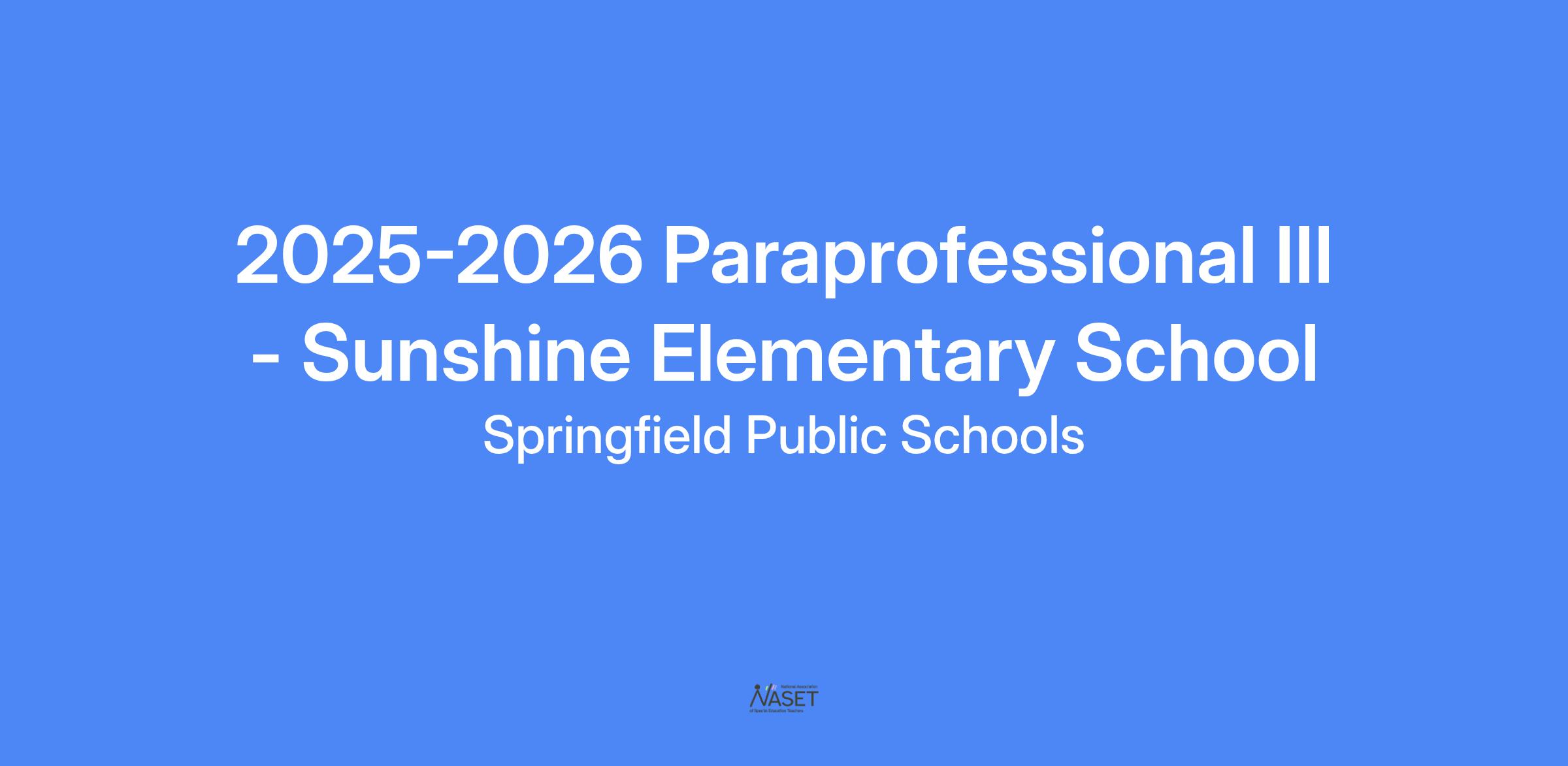 2025-2026 Paraprofessional III - Sunshine Elementary School