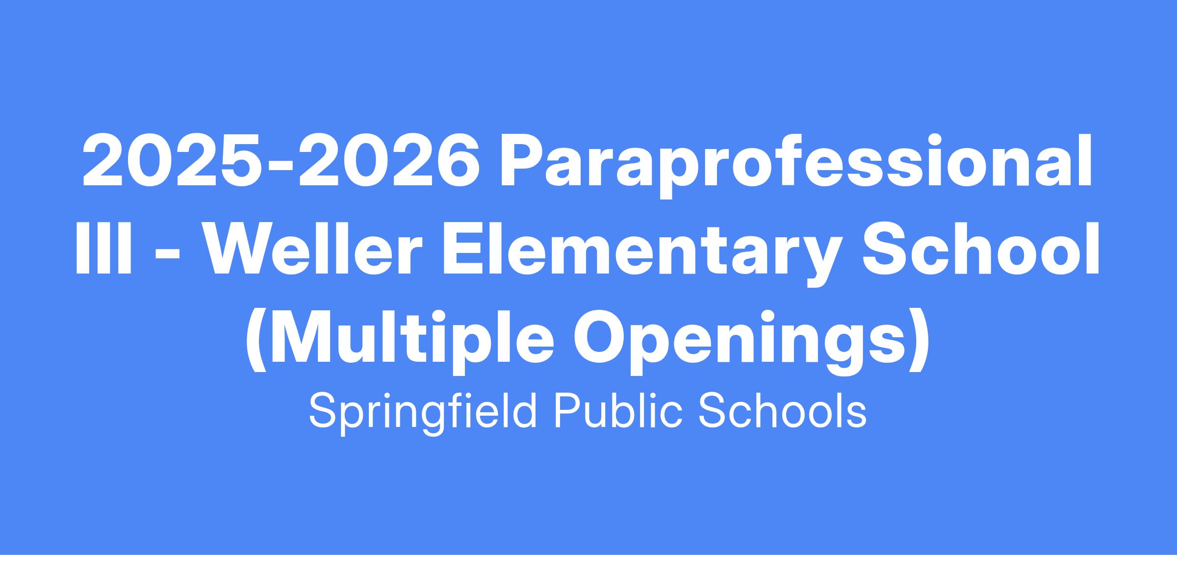 2025-2026 Paraprofessional III - Weller Elementary School (Multiple Openings)