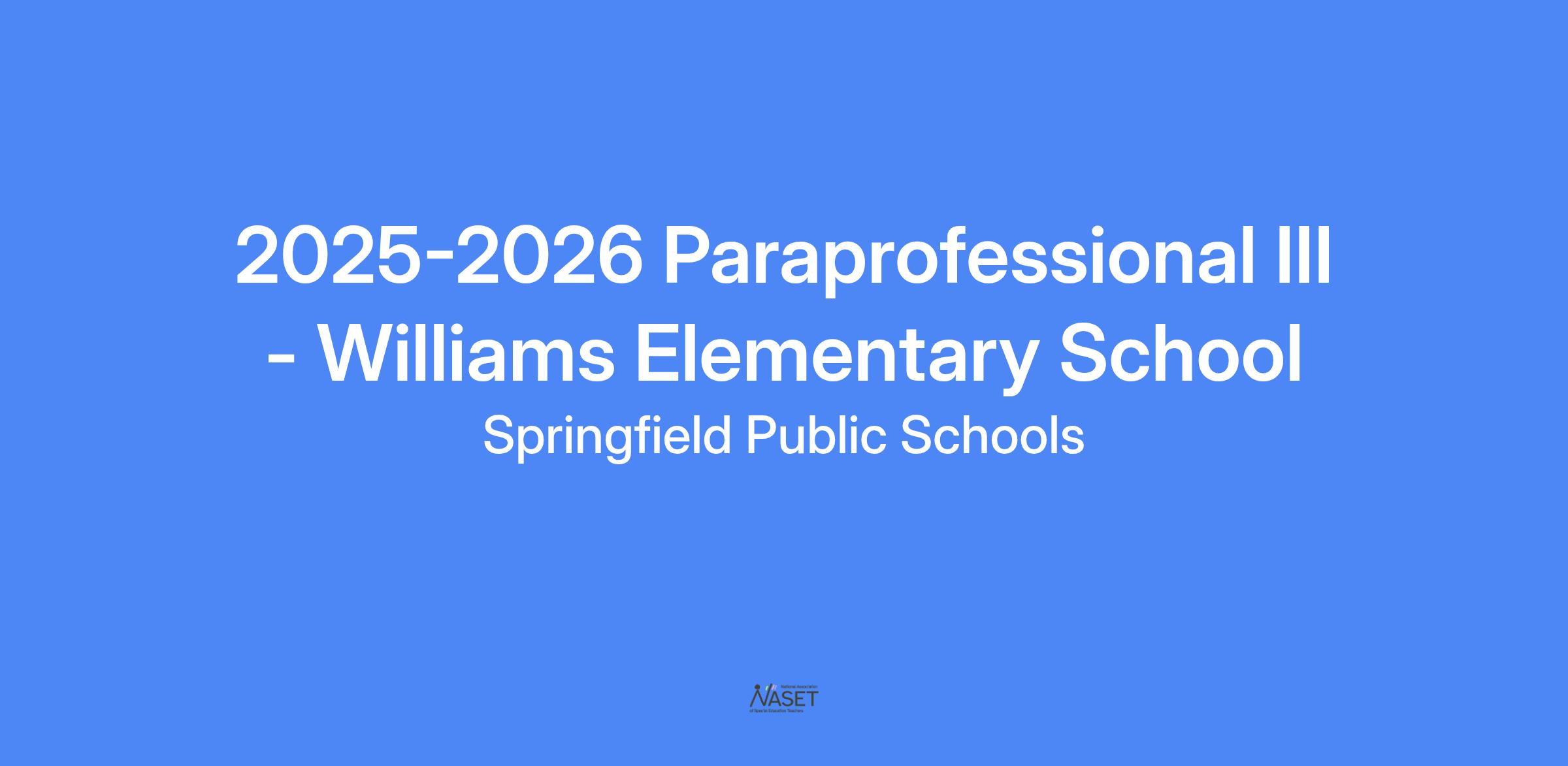 2025-2026 Paraprofessional III - Williams Elementary School