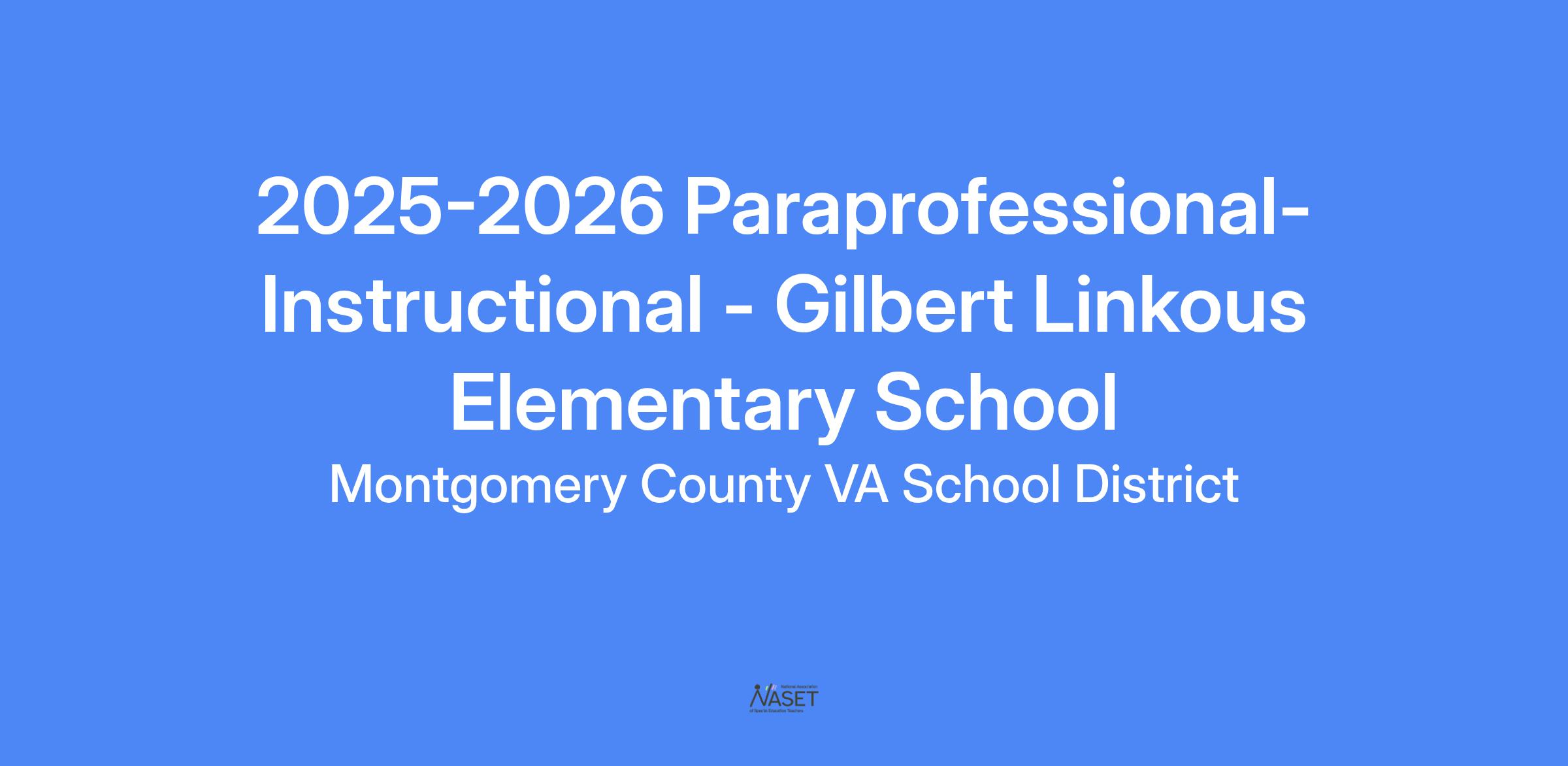 Montgomery County Public Schools in Virginia, is now accepting applications for a Paraprofessional - Instructional position that is available at Gilbert Linkous Elementary School.