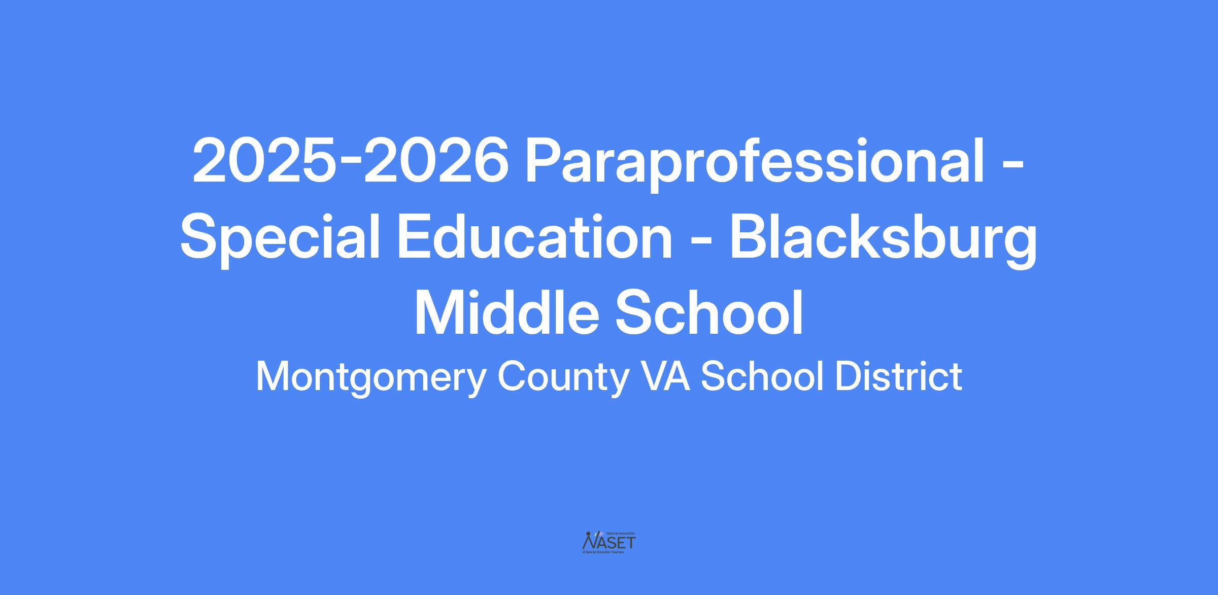 Montgomery County Public Schools in Virginia is now accepting applications for a Special Education Paraprofessional position that is available at Blacksburg Middle School for the SY 2025-2026.