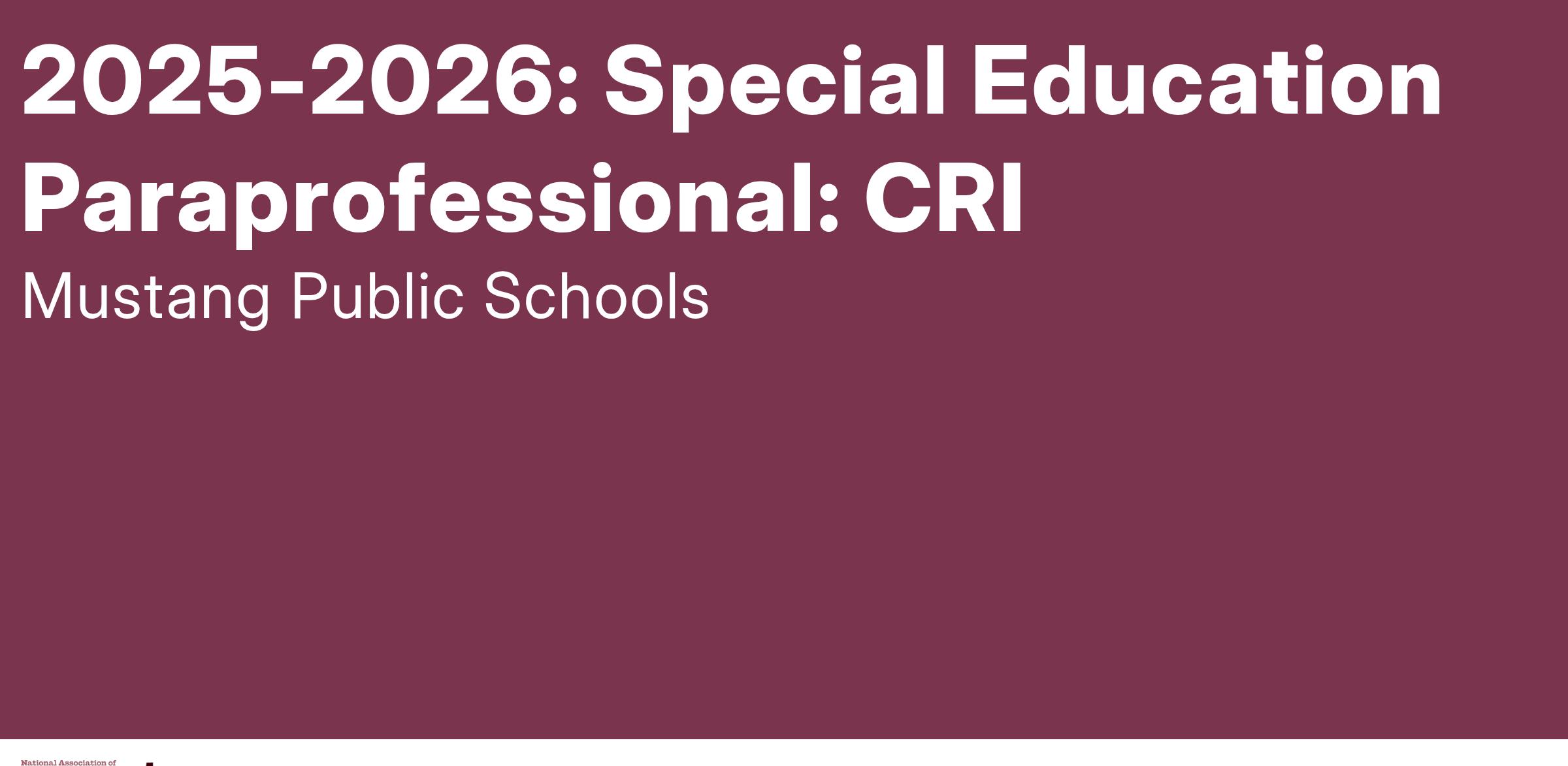 QUALIFICATIONS: For Requirements, see https://sde.ok.gov/special-education-paraprofessionals at Oklahoma State Departement of Education's website.