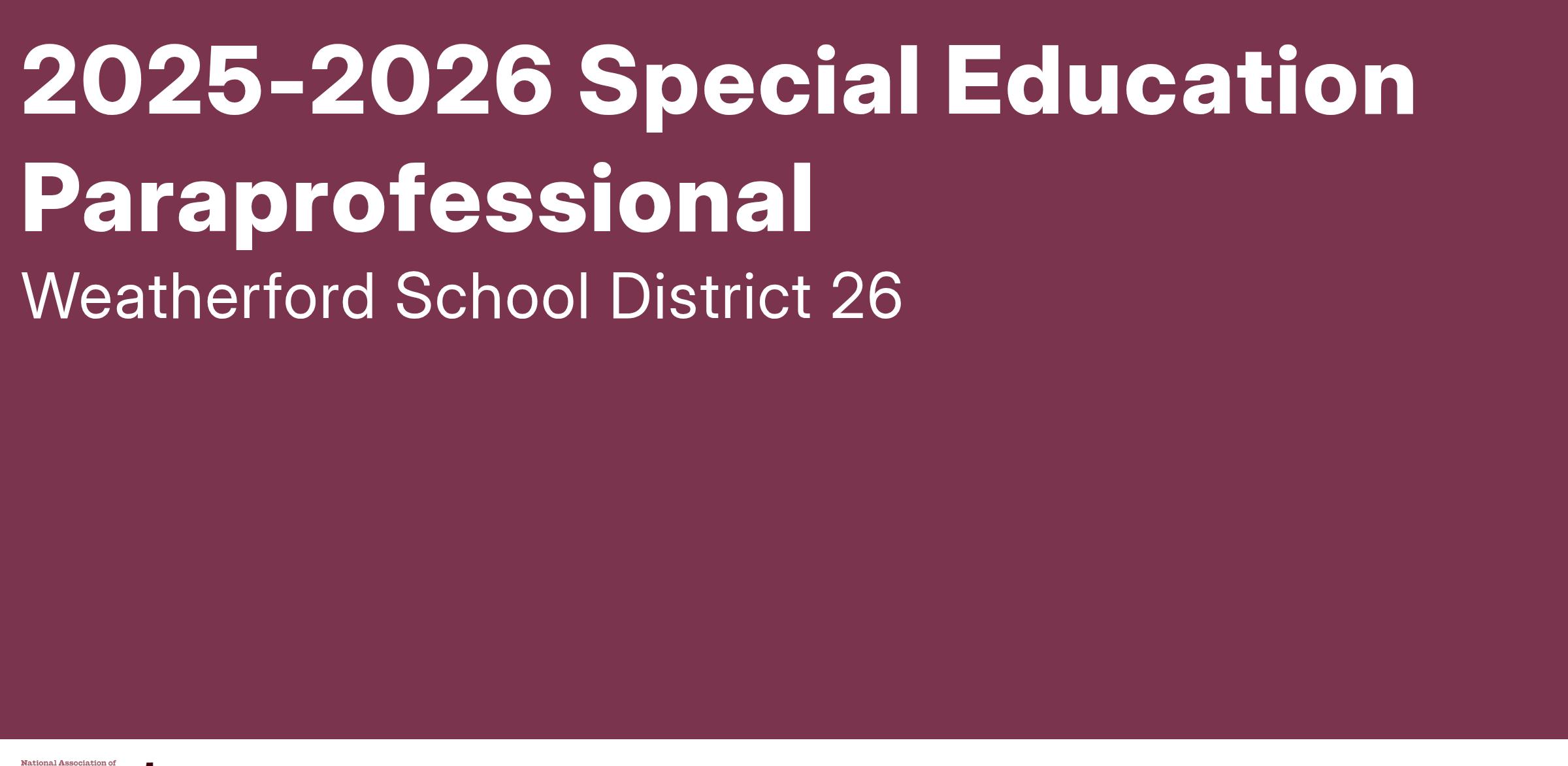 Listed below is a currently vacancy for a support staff position in the Weatherford Public School district. All salaries for support positions are based on earned position on the salary schedule.