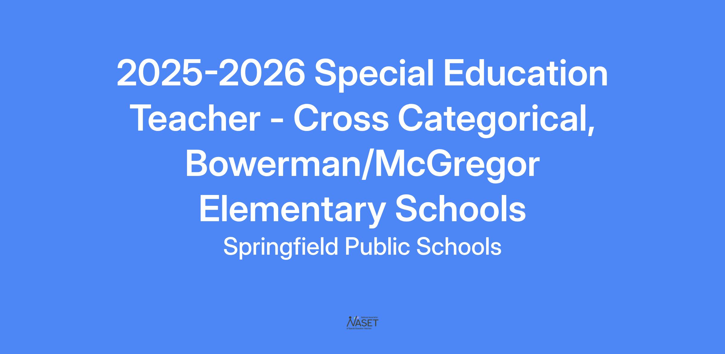 2025-2026 Special Education Teacher - Cross Categorical, Bowerman/McGregor Elementary Schools