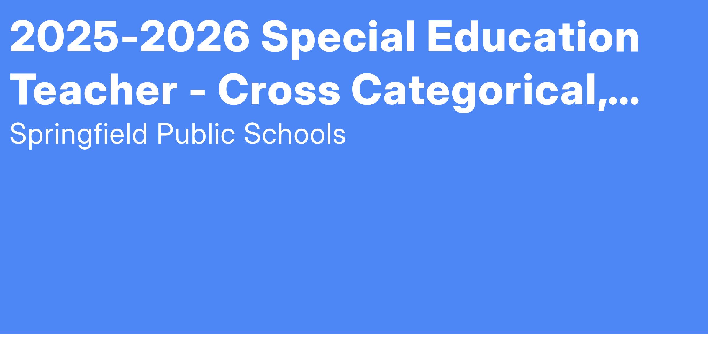 Job Title:                      Special Education Teacher - Cross Categorical