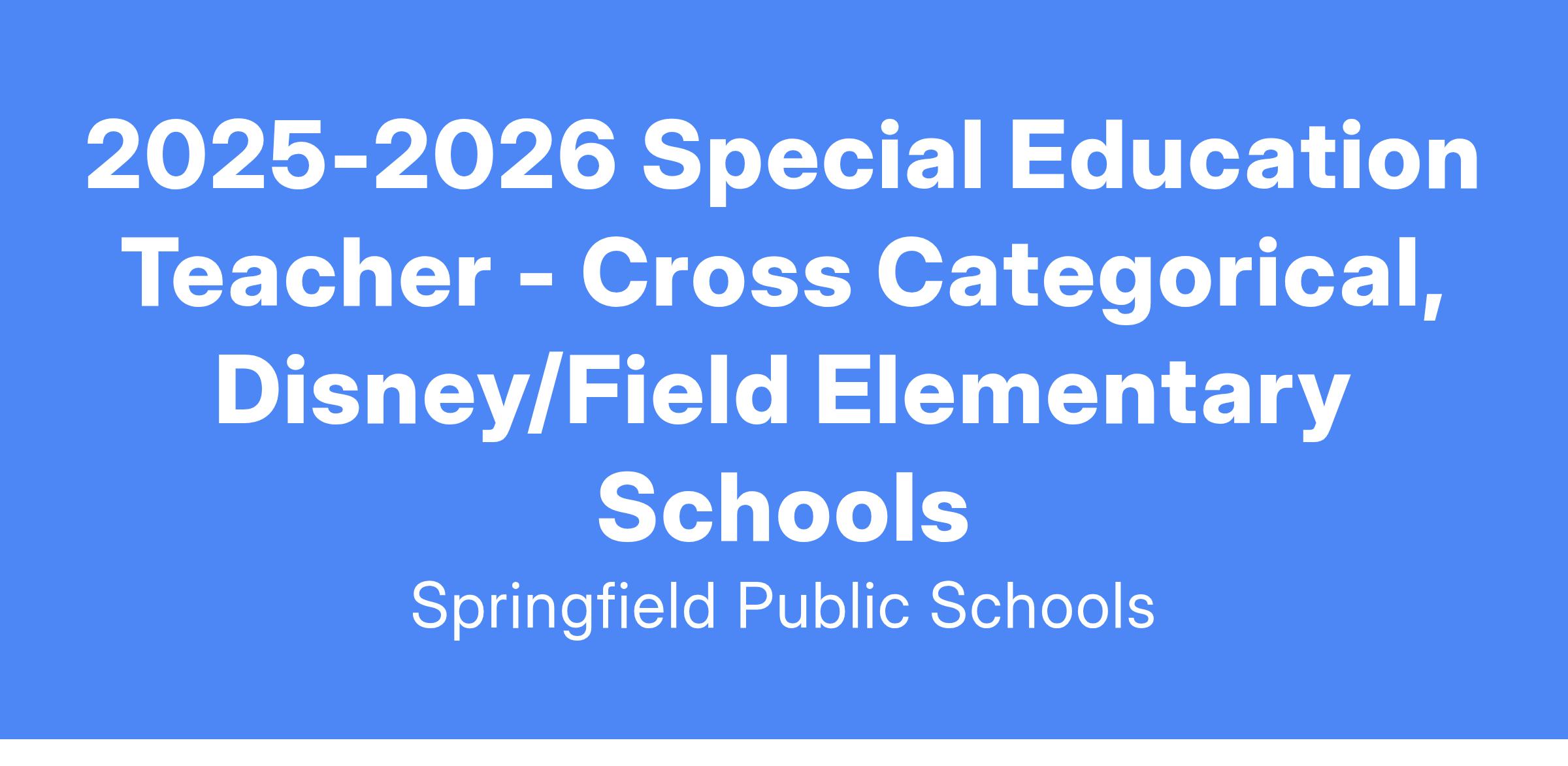 2025-2026 Special Education Teacher - Cross Categorical, Disney/Field Elementary Schools