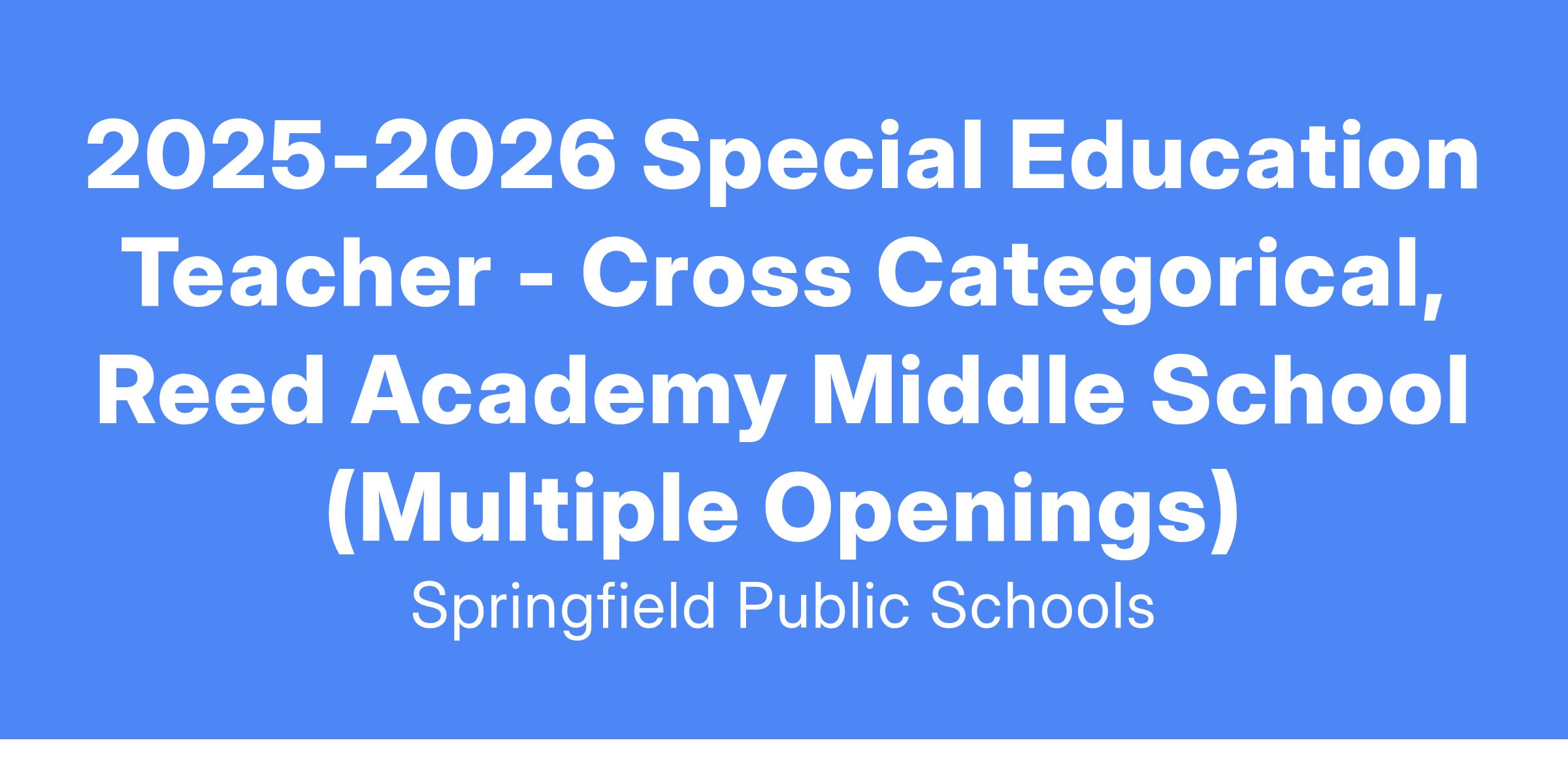 2025-2026 Special Education Teacher - Cross Categorical, Reed Academy Middle School (Multiple Openings)