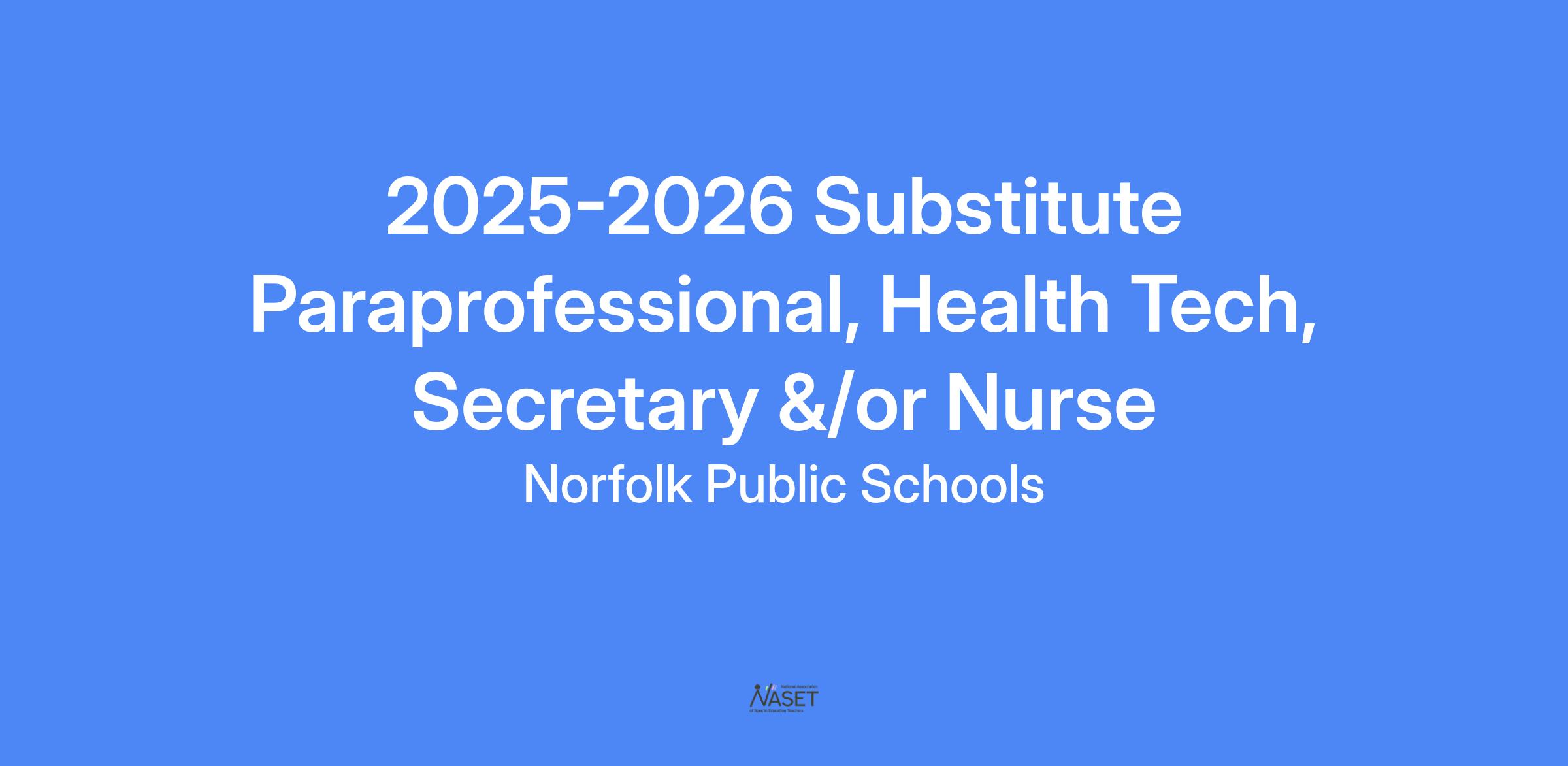 JOB TITLE: 2025-2026 Substitute Paraprofessional, Health Tech, Secretary &/or Nurse