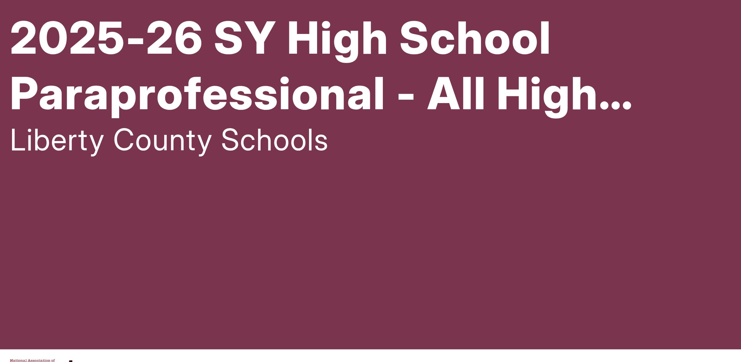 2025-26 SY High School Paraprofessional - All High Schools