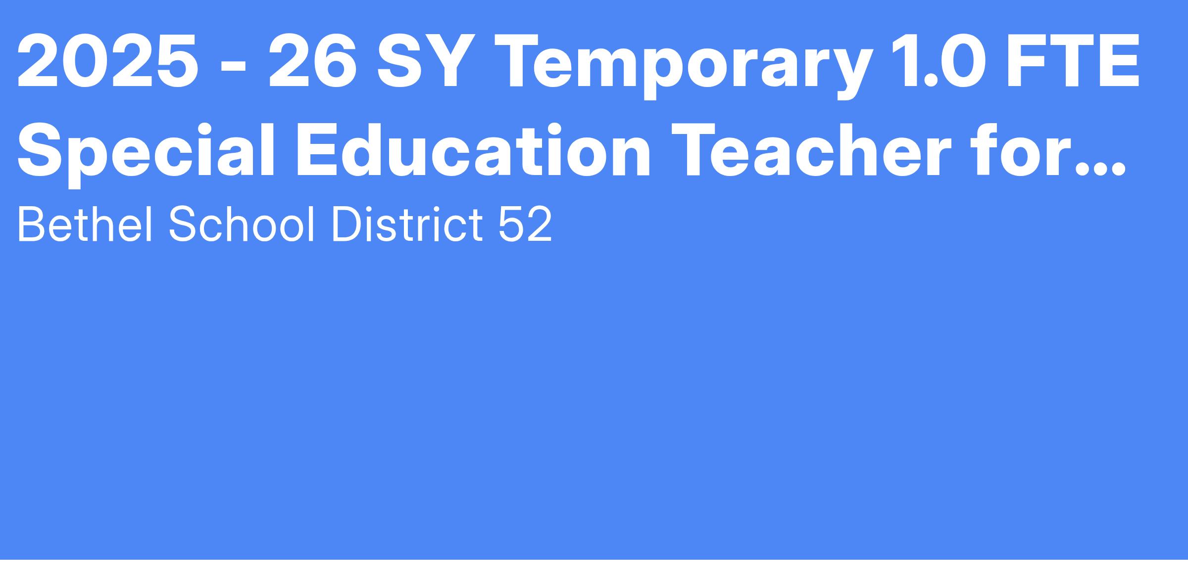 Bethel School District is seeking appropriately licensed candidates for one temporary 1.0 FTE Special Education Teacher for Kalapuya High School for the 2025-26 school year.