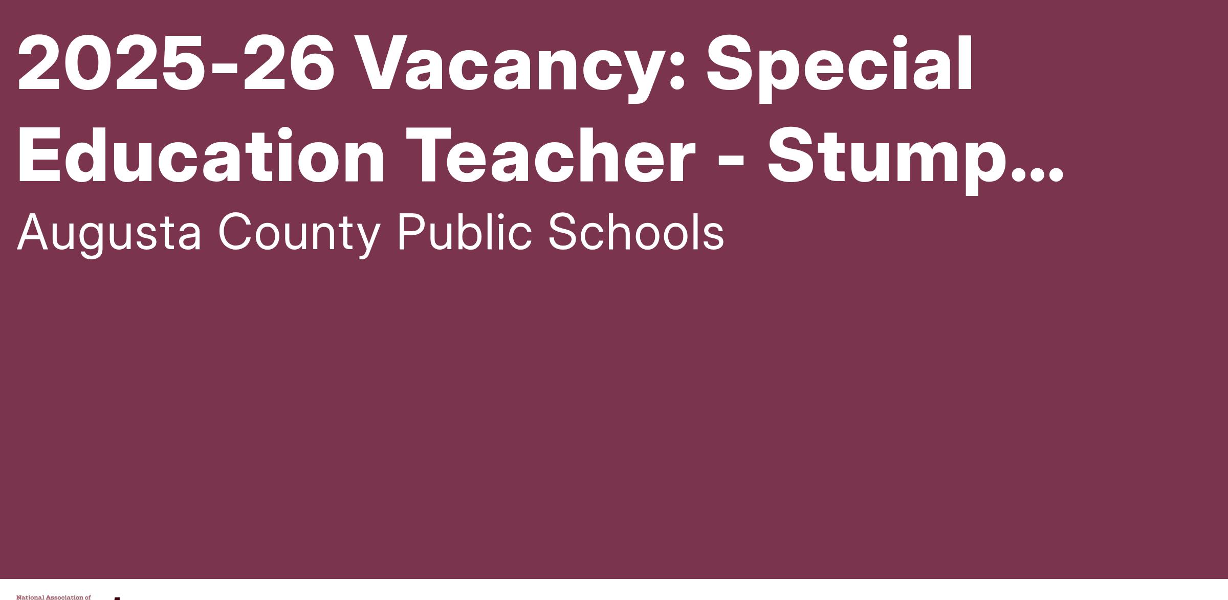 Special Education Teacher, Stump Elementary School