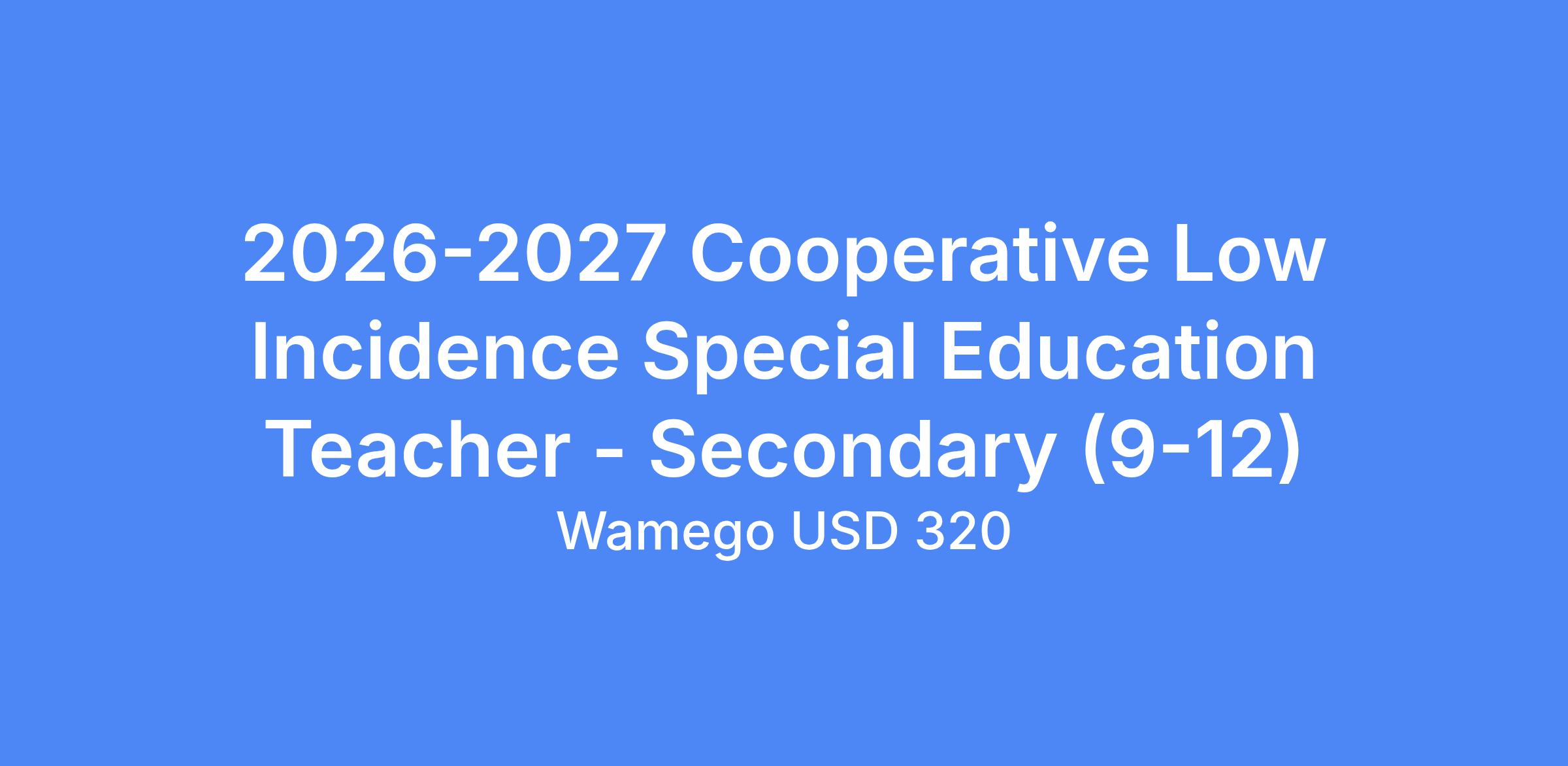 USD 320, Wamego, has a vacancy for a Cooperative Low Incidence Special Education Teacher for Grades 9-12 at Wamego High School for the 2026-2027 school year.