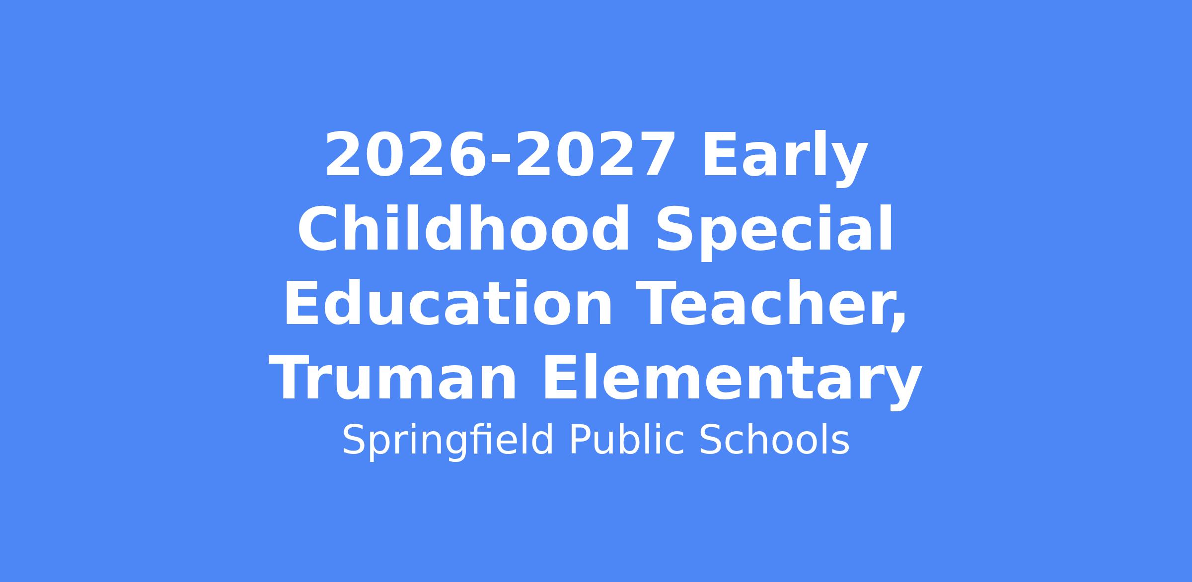 Job Title: 2026-2027 Early Childhood Special Education Teacher, Truman Elementary