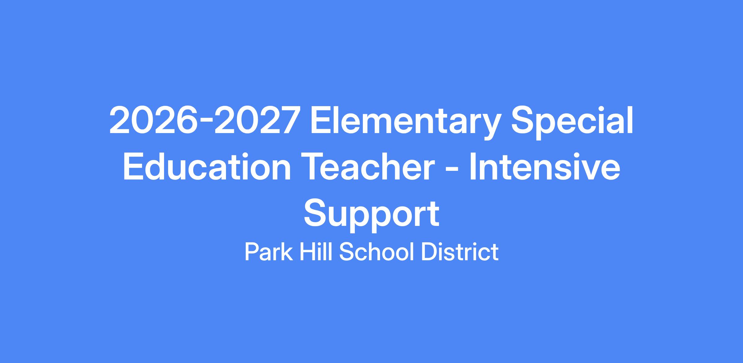 Special Education Teacher (Intensive Support) for the 2026-27 school year at Tiffany Ridge Elementary