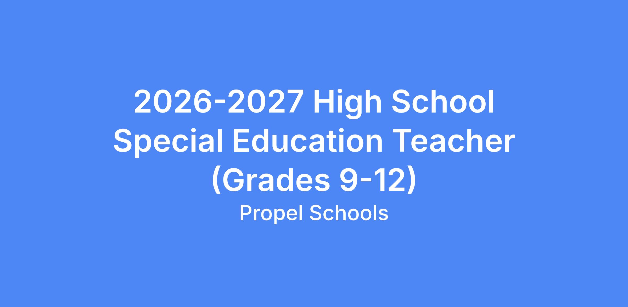 Propel seeks a High School Special Education Teacher (Grades 9-12). This position is for the 2026-2027 school year. The first day of orientation will be August 3rd, 2026.