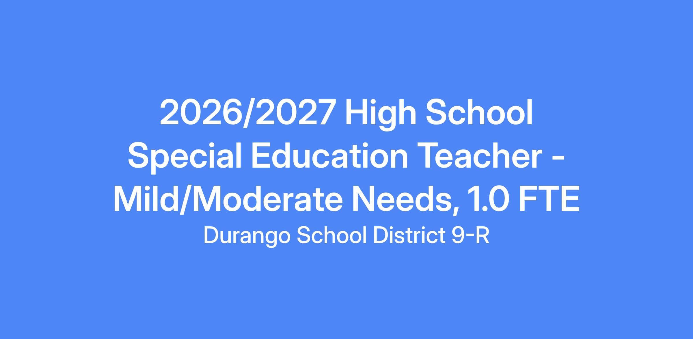 Applications are being accepted for High School Mild/Moderate Needs Special Education Teachers for the 2026/2027 school year. Must meet CDE and ESSA's requirements for In-Field Teacher in Special Education by the start date. Begins August 13, 2026.