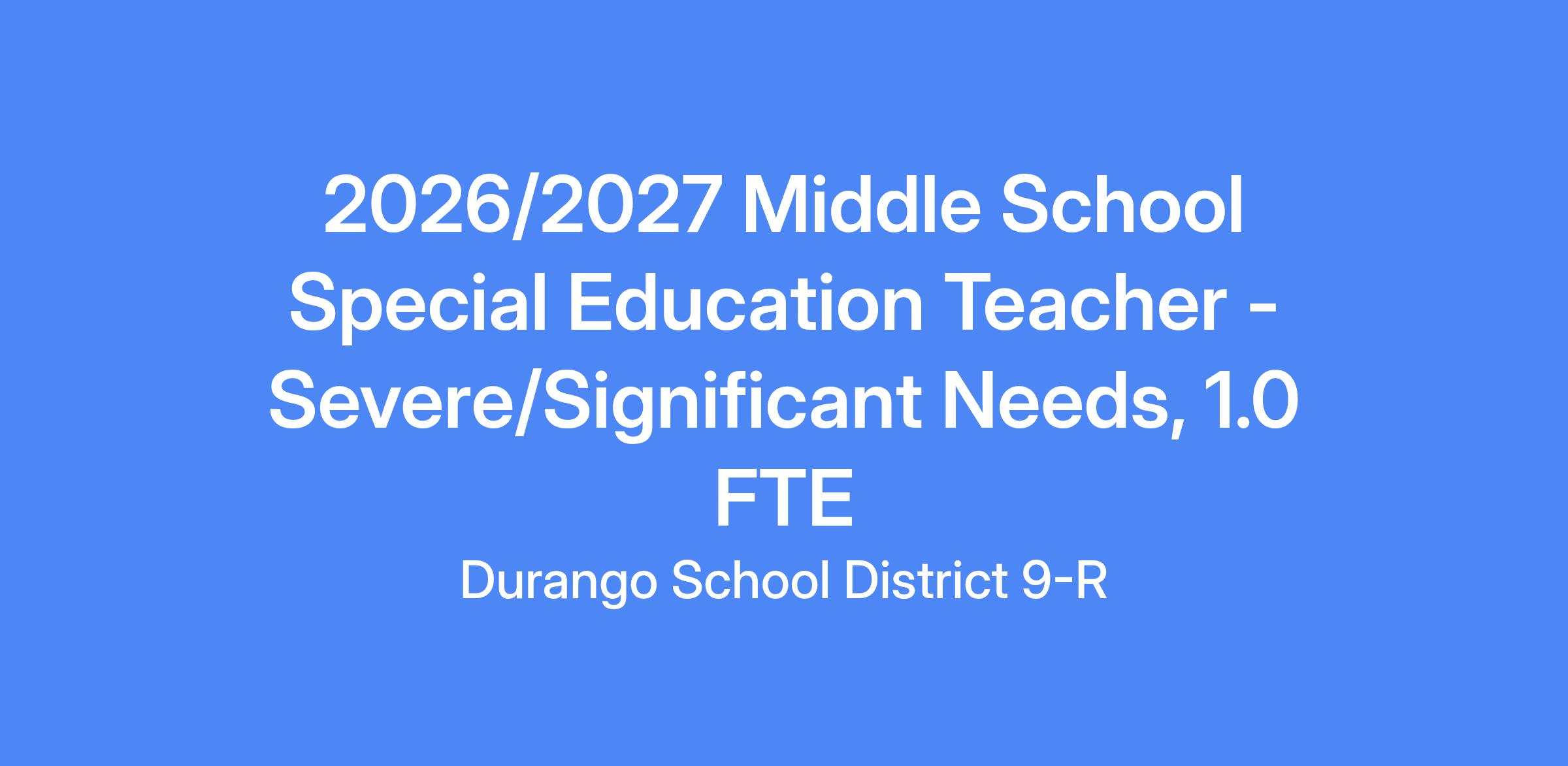 Applications are being accepted for Middle School Special Education Teachers - Severe/Significant Needs, for the 2026/2027 school year.