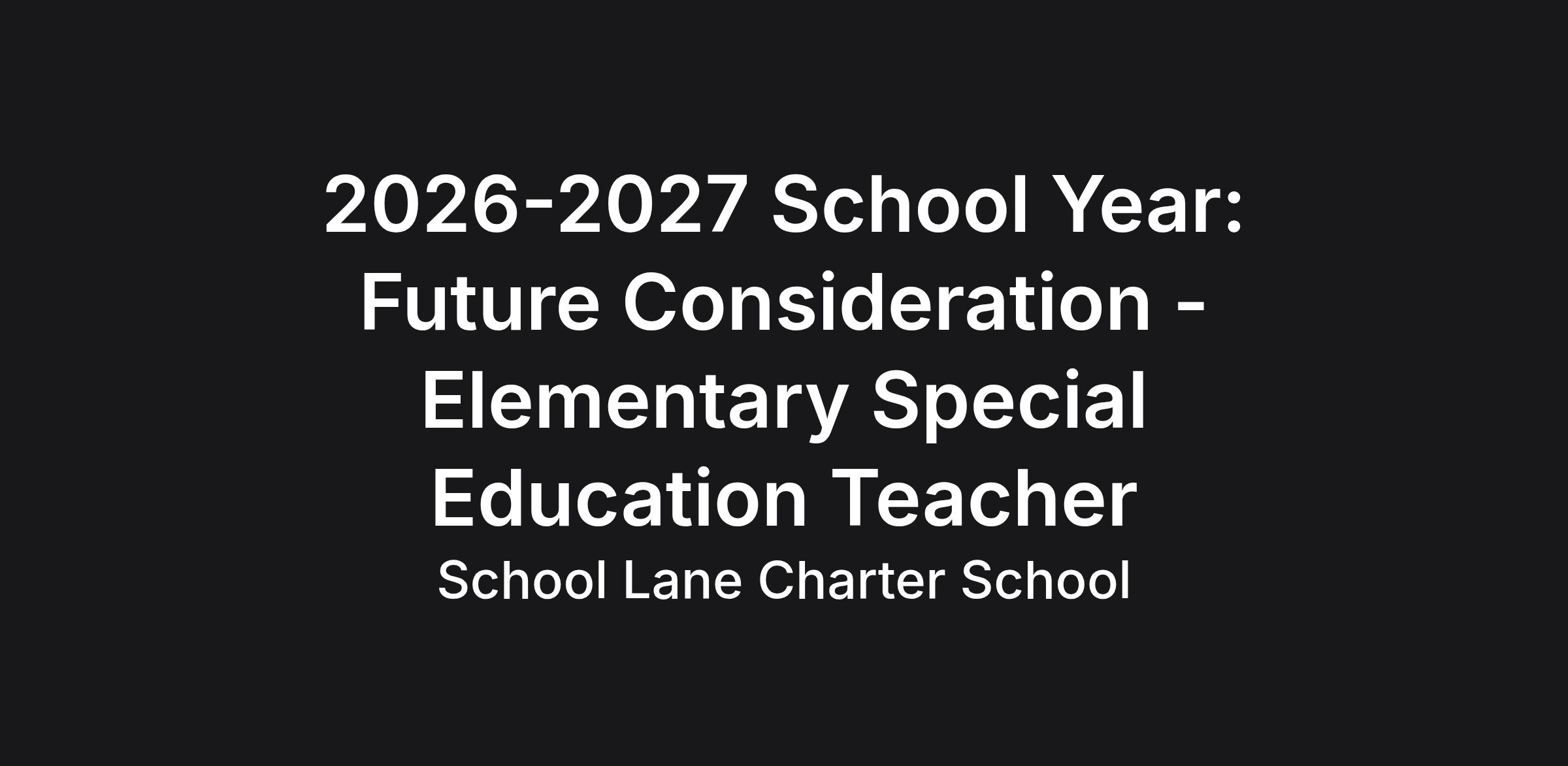 Thank you for your interest in a position with School Lane Charter School. Please understand the submission of an application does not guarantee a screening interview. You will be contacted if selected for an interview.