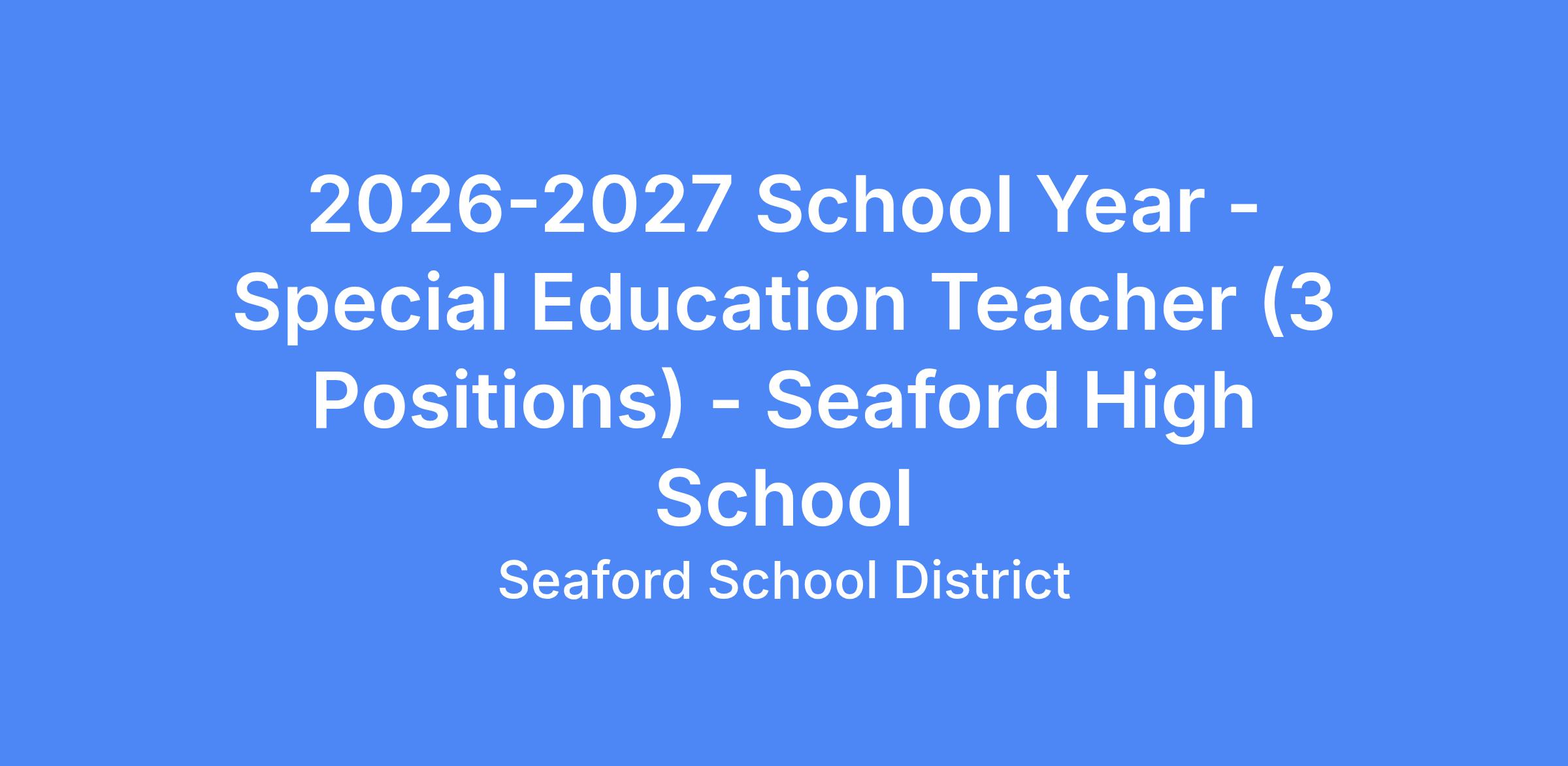Special Education Teacher (3 Positions) - High School - for the 2026-2027 School Year