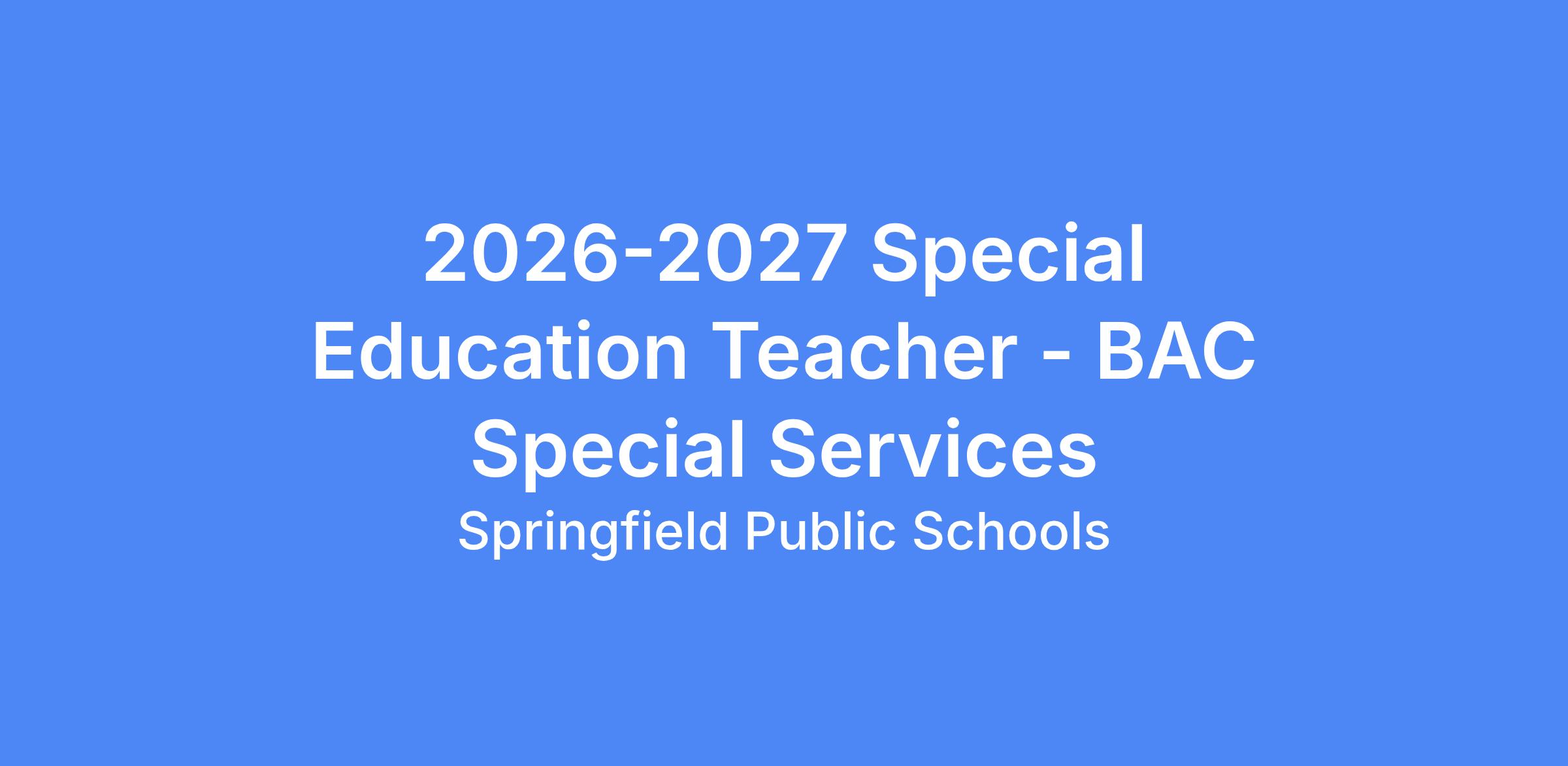Job Title: Special Education Teacher - Cross Categorical