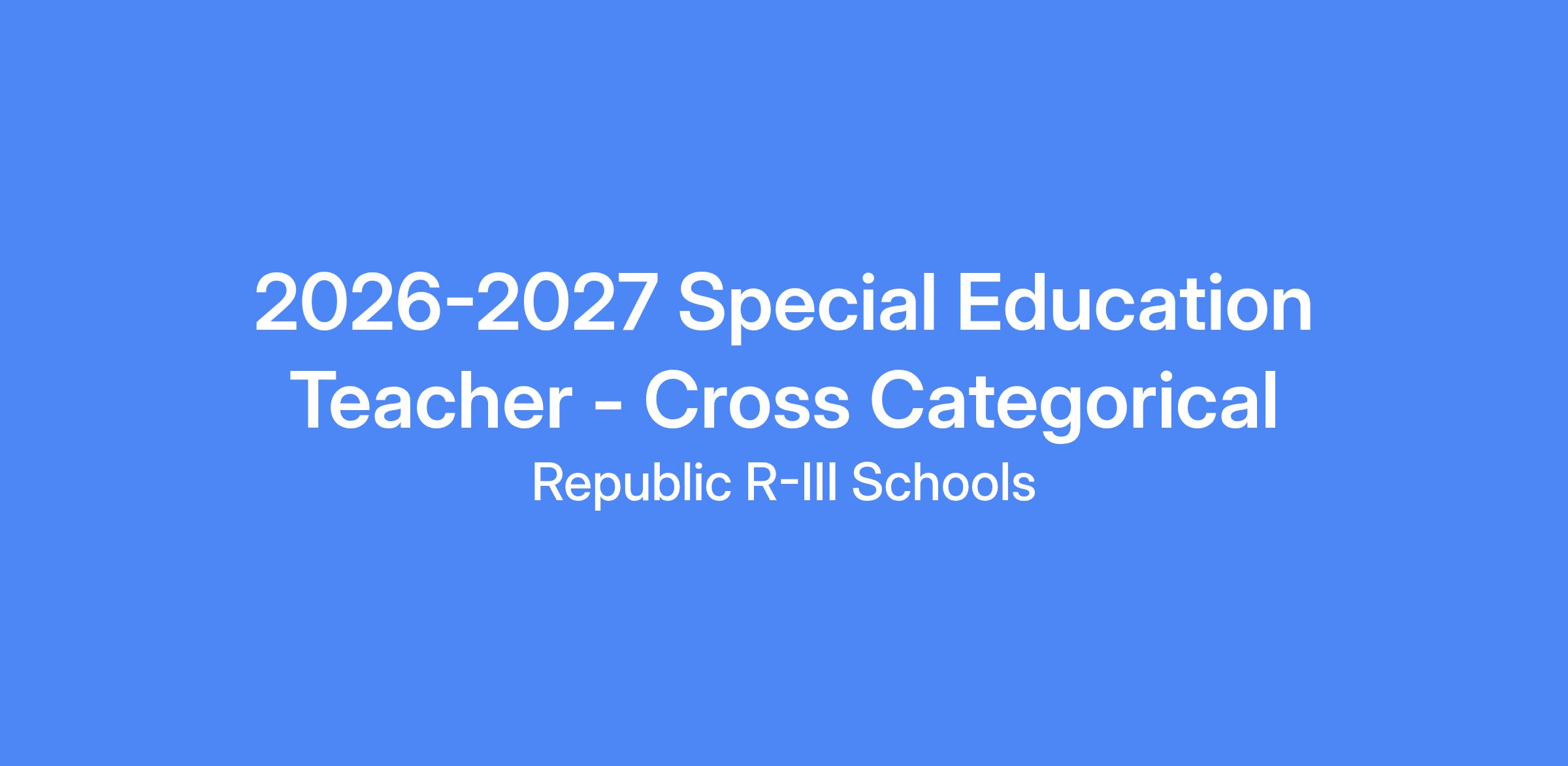 2026-2027 Special Education Teacher - Cross Categorical