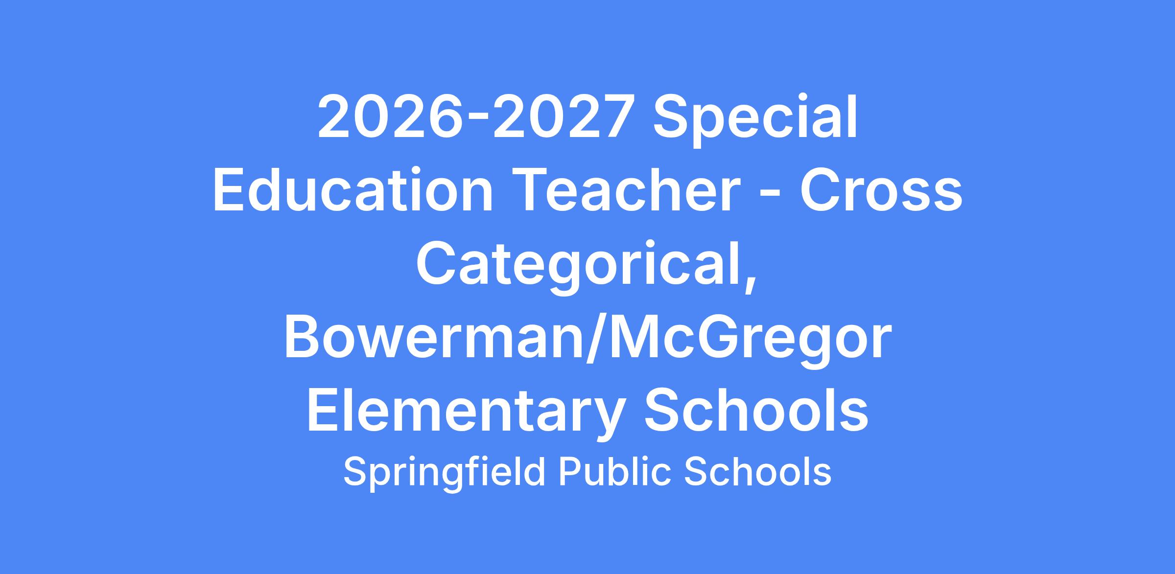 2026-2027 Special Education Teacher - Cross Categorical, Bowerman/McGregor Elementary Schools