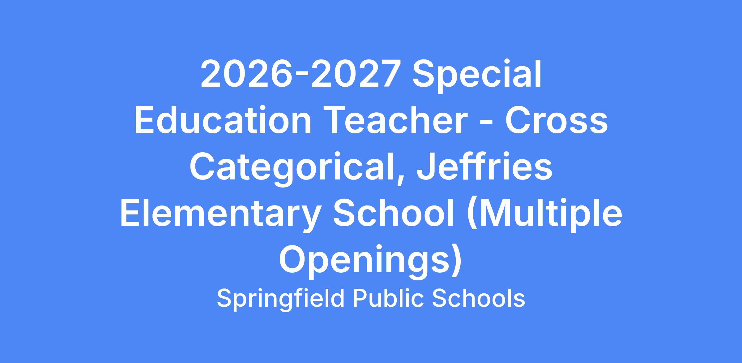 2026-2027 Special Education Teacher - Cross Categorical, Jeffries Elementary School (Multiple Openings)