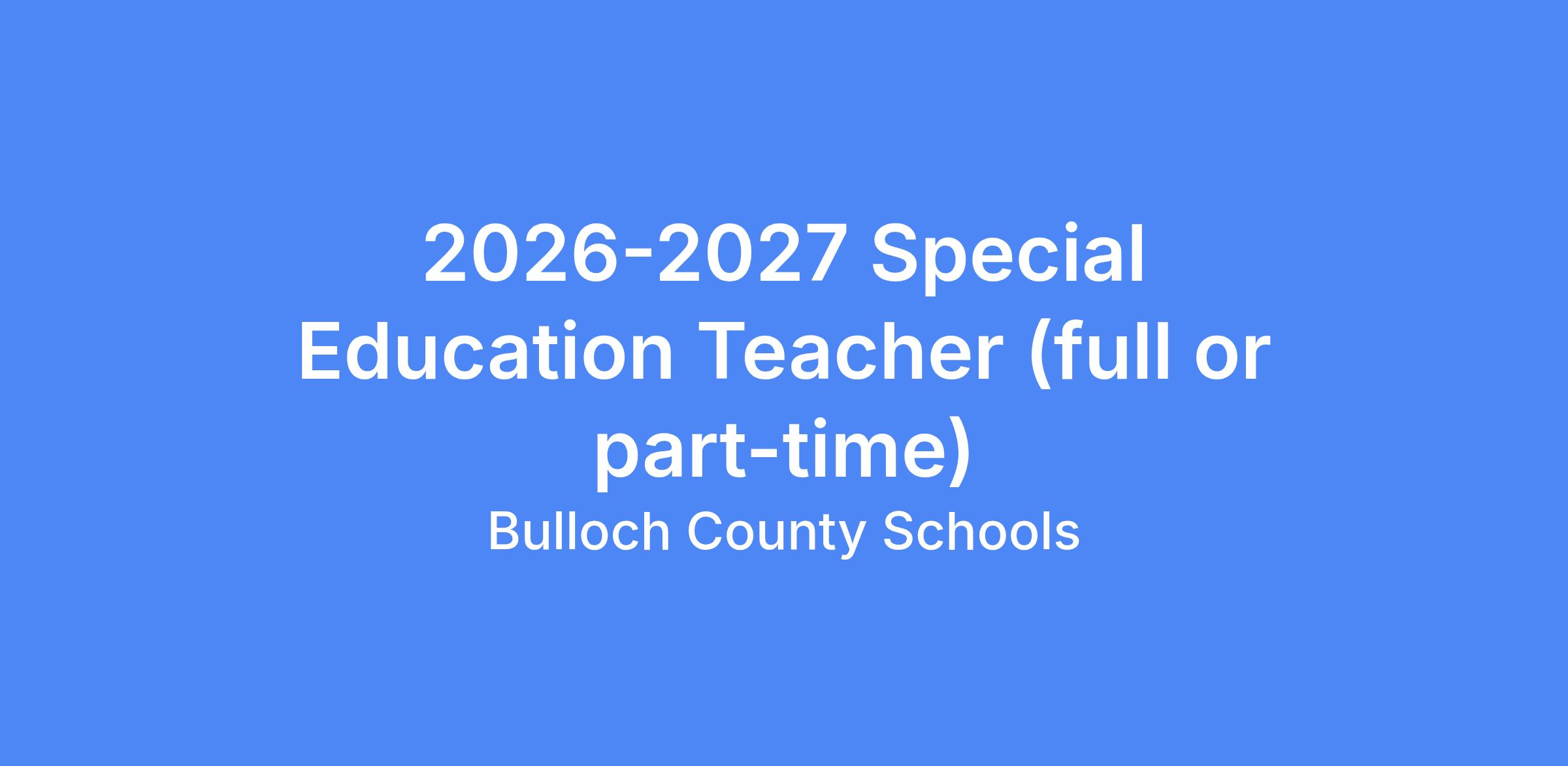 SPECIAL EDUCATION TEACHER (FULL OR PART-TIME)