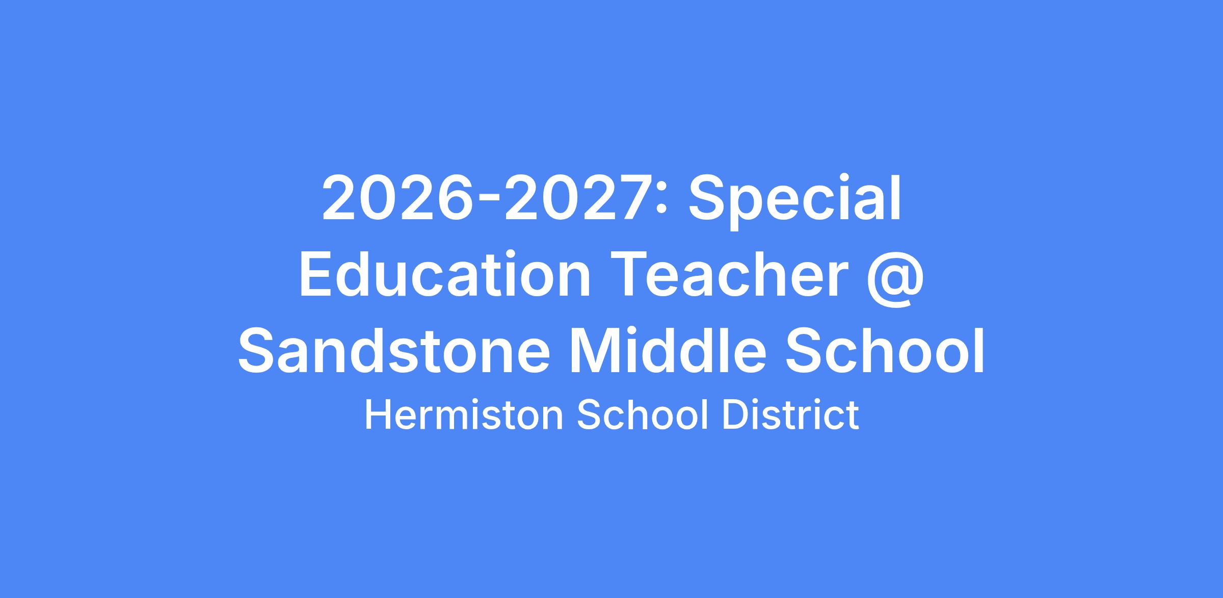 Hermiston School District is seeking a full-time, Special Education teacher grades 6-8. The successful candidate will be properly licensed or have the ability to obtain licensure prior to the start of the school year, and possess the ability to teach Middle School level, Special Education. Position begins August 2026.